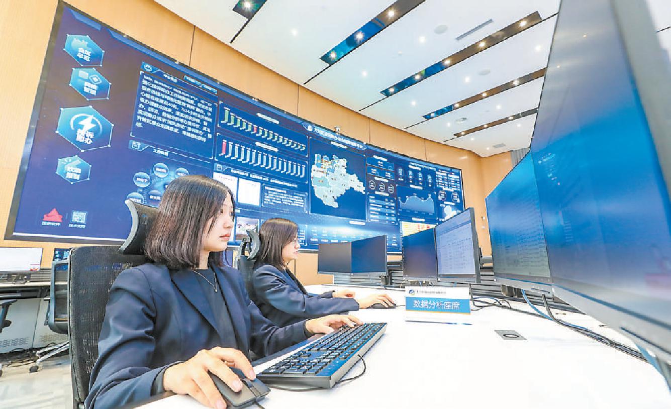 新建成的大兴区接诉即办调度指挥中心内,工作人员在进行数据分析。本报记者 武亦彬摄