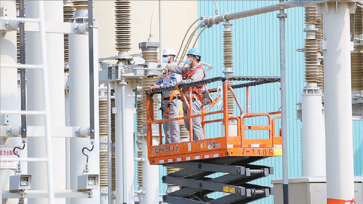 国网冀北检修公司员工在张北柔性直流电网工程开展设备检修工作