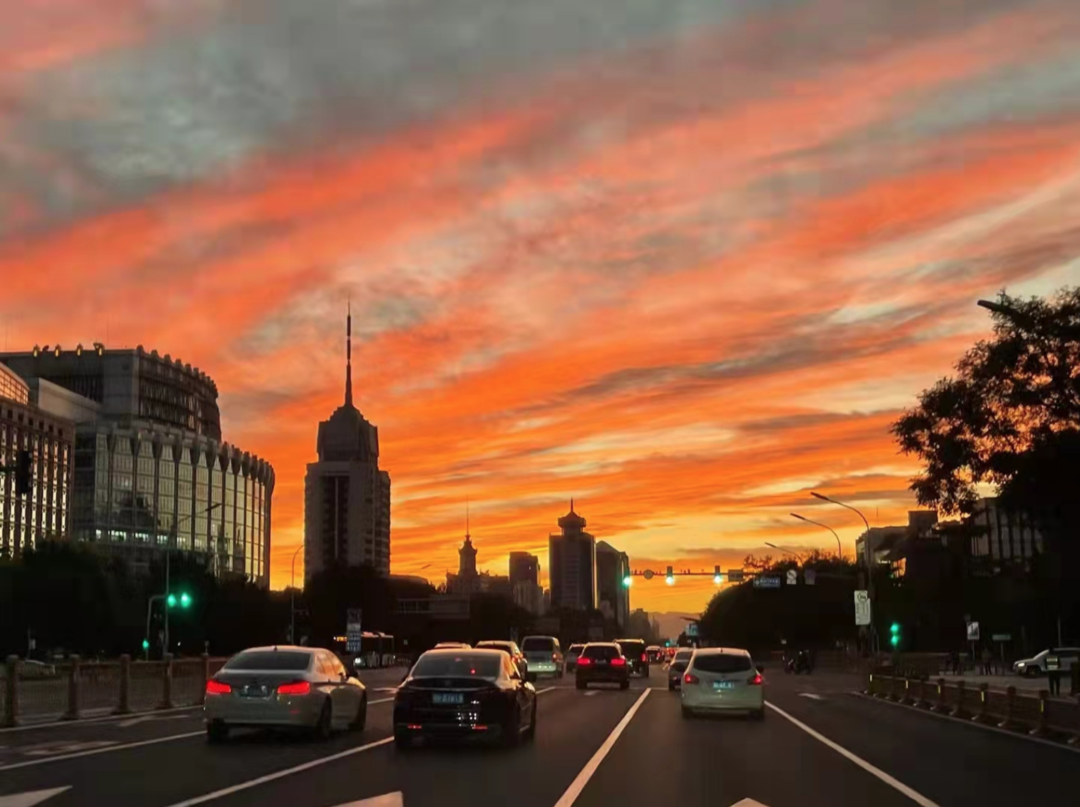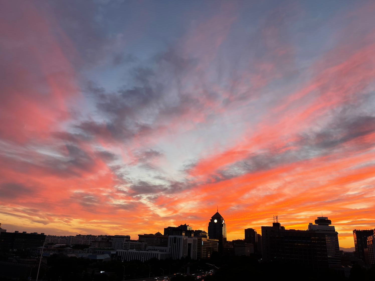 今天傍晚,金粉色的晚霞铺满北京的天空,这浪漫的一幕你看到了么?错过的别急,这里有大量美图: