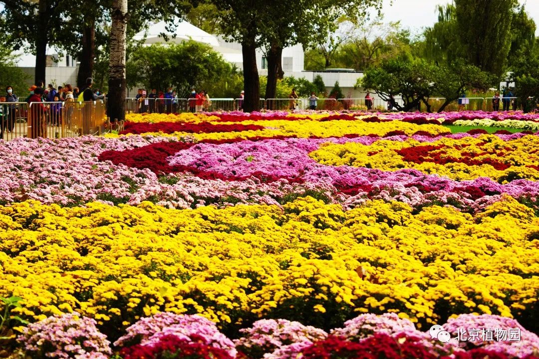 近日,位于北京植物园科普馆西侧的菊花花海正值观赏期。花海由小菊、多头菊、悬崖菊等15000余株菊类植物共同打造而成,各色小菊通过精巧的设计栽植,呈现丰富的艺术造型,成为市民游客争相打卡拍照的经典景区。