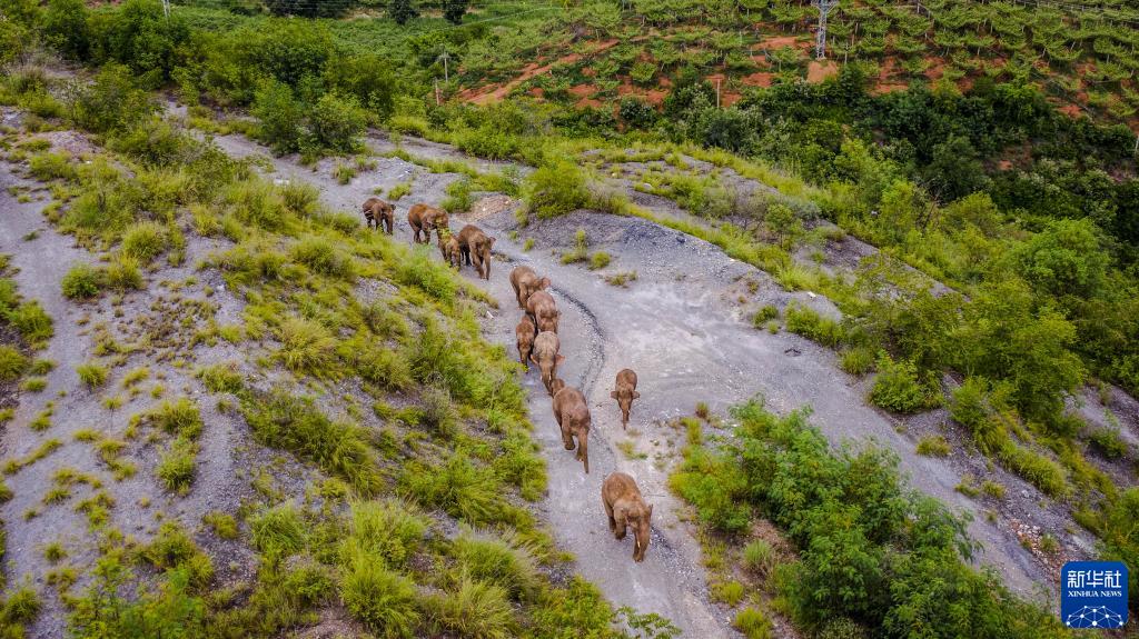 2021年6月7日在云南昆明市晋宁区夕阳彝族乡拍摄的野象(无人机照片)。新华社发