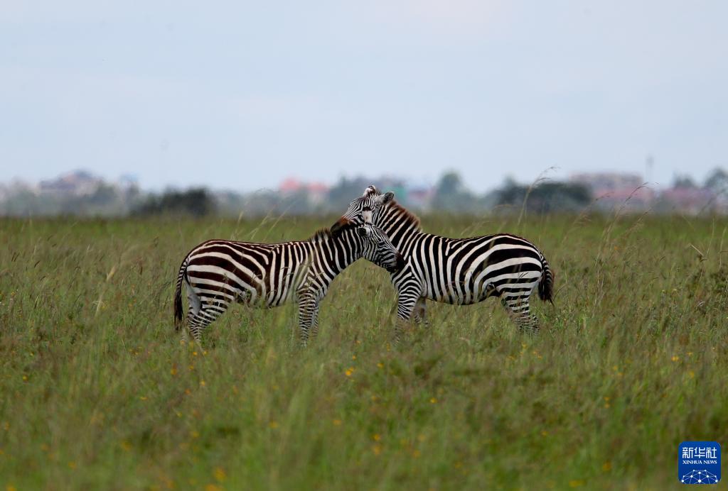 这是2021年5月19日在肯尼亚内罗毕国家公园内拍摄的斑马。新华社记者 龙雷 摄