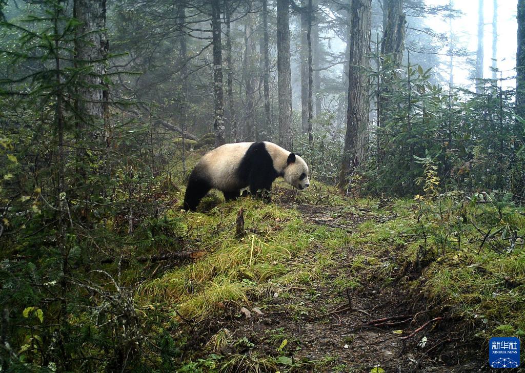 这是大熊猫国家公园甘肃白水江片区的红外相机拍摄到的野生大熊猫活动画面(资料图片)。新华社发(甘肃白水江国家级自然保护区管理局供图)