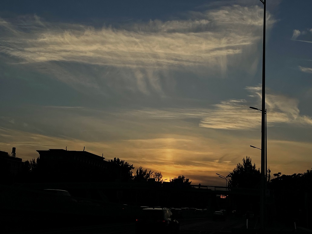 北京天空出现多姿毛卷云,晚霞更诱人