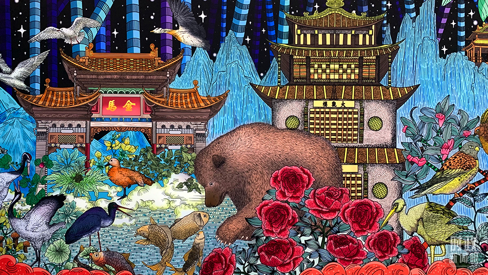 △会展中心,“生物多样性”主题壁画。(总台央视记者范一鸣拍摄)