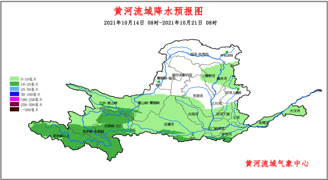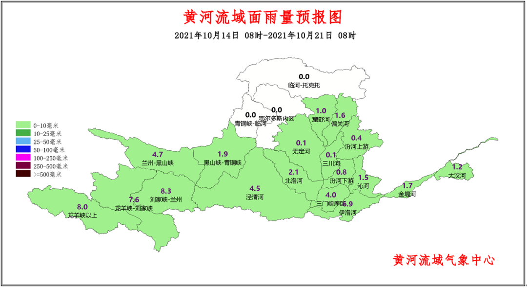 10月14日8时-10月21日8时黄河流域累计降水量预报