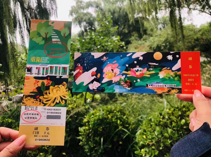 玉渊潭公园则别出心裁地用特别版纪念门票来迎接重阳节的到来。今天上午,公园各个门区都同步发售了重阳主题门票,共计1000张。别看只是张小小的门票,仍然吸引了不少市民前来购买和收藏。今年以来,为了增加公园文创的艺术性和趣味性,玉渊潭公园已结合春节、元宵、清明、端午、七夕、中秋发行了限量版纪念门票,今天发行的重阳主题更是融入了菊花、灯笼等祝福,具有一定收藏价值。