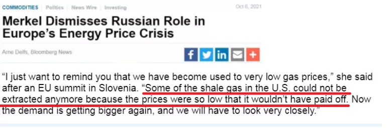 △彭博社:默克尔说,“美国的一些页岩气无法再开采,因为价格太低,根本不值得开采。现在,天然气需求再次上升,我们必须密切关注(这些变化)”。