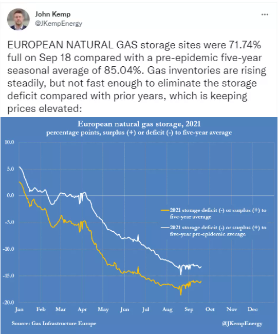 应该指出的是,造成欧洲此次“气荒”的另一个不易被人注意的原因,是美国对欧洲的液化天然气供应受到了工厂因飓风关闭的影响,并没有如期而至。