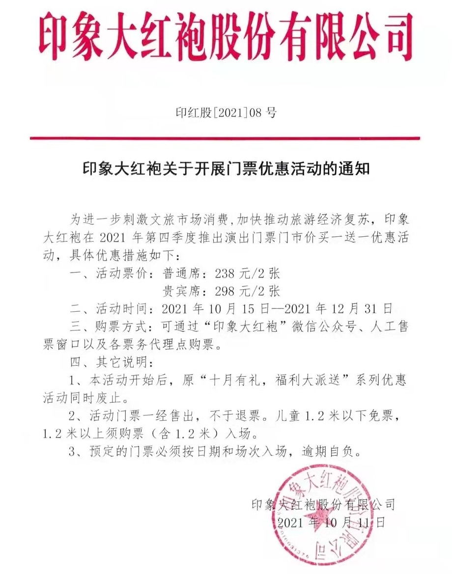 印象大红袍演出门票买一送一