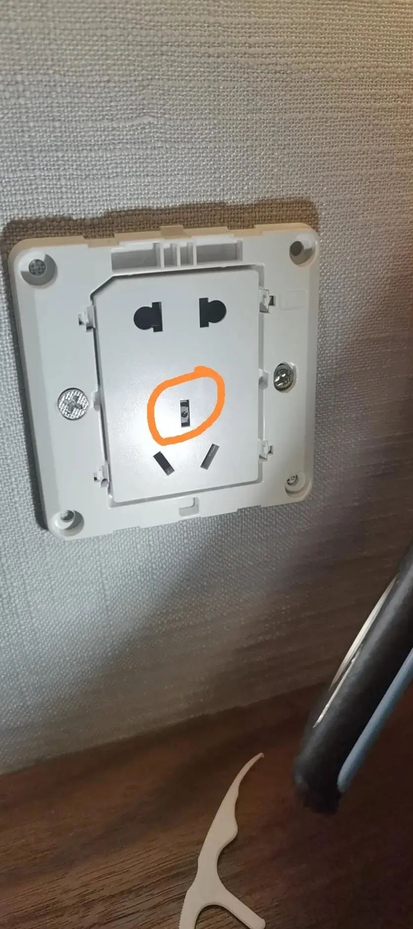 唐女士在酒店中发现插座藏有针孔摄像头 受访者供图