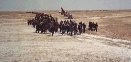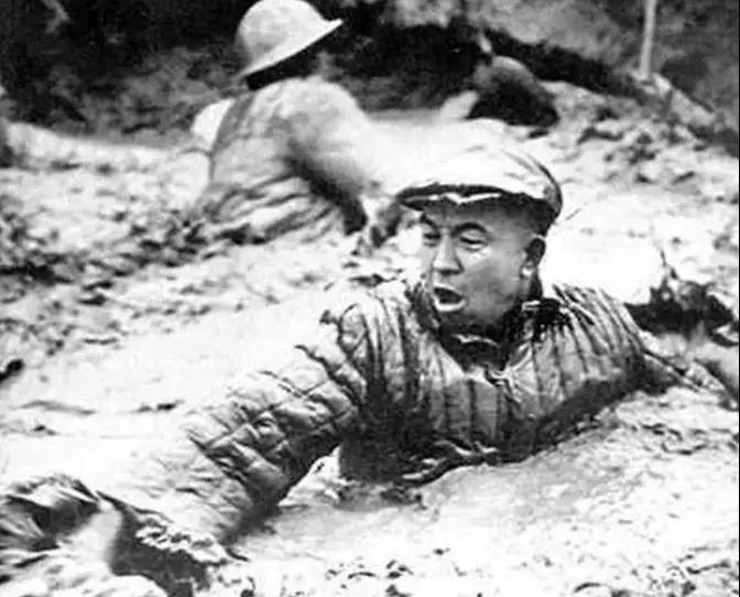 ▲王进喜跳入泥浆中用身体搅拌泥浆