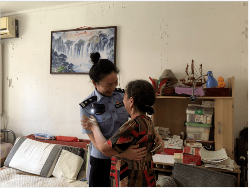 “这张照片是我同事无意中拍下来的。”王佳说。照片上的她,抱着一位70多岁的老阿姨。