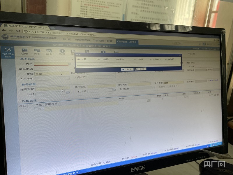 陈李庄村卫生室目前使用的单县基层医疗卫生机构管理信息系统,村医称,此前县里曾多次更换信息管理系统(总台央广记者 管昕 摄)