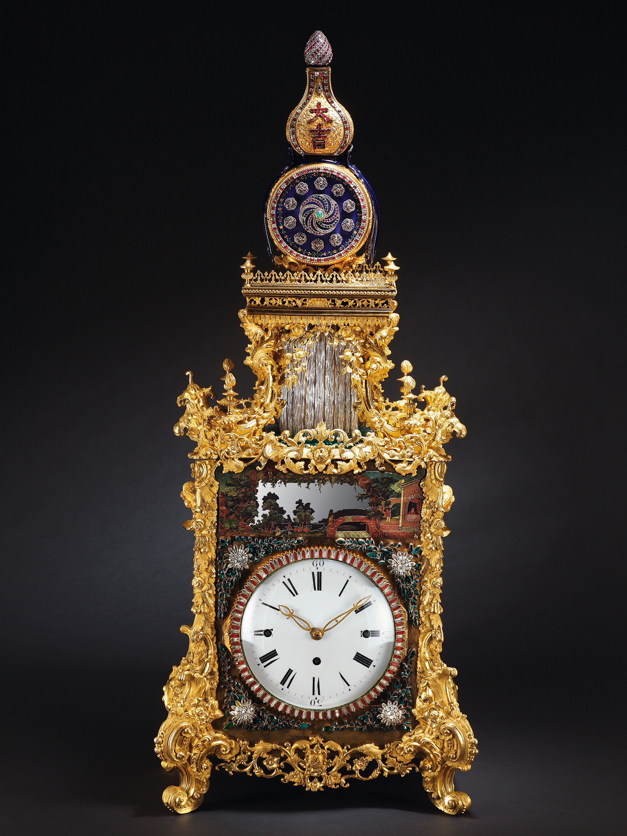 清乾隆御製铜鎏金转花转水法大吉葫芦钟