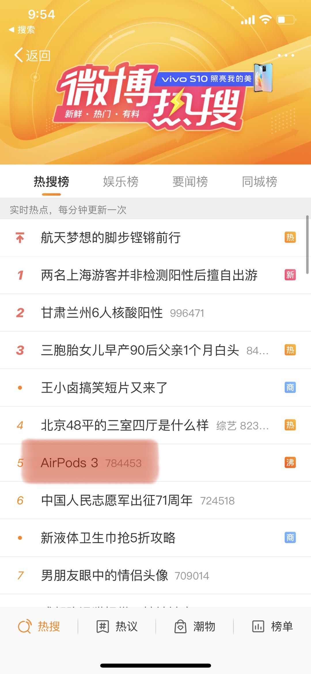 “刘海已经出现了小机传大机的现象了吗?”“你们真的觉得‘刘海屏’好看吗?”“接下来会有哪个电脑厂商按捺不住率先模仿?”“我以为刘海屏能支持人脸解锁来着,但是并不支持”“Airpods还是很香的,特别是我这种接受不了入耳式的”……苹果第二场新品发布会召开后,“AirPods 3”和“新MacBook Pro刘海屏”引发广泛讨论,双双登上微博热搜。