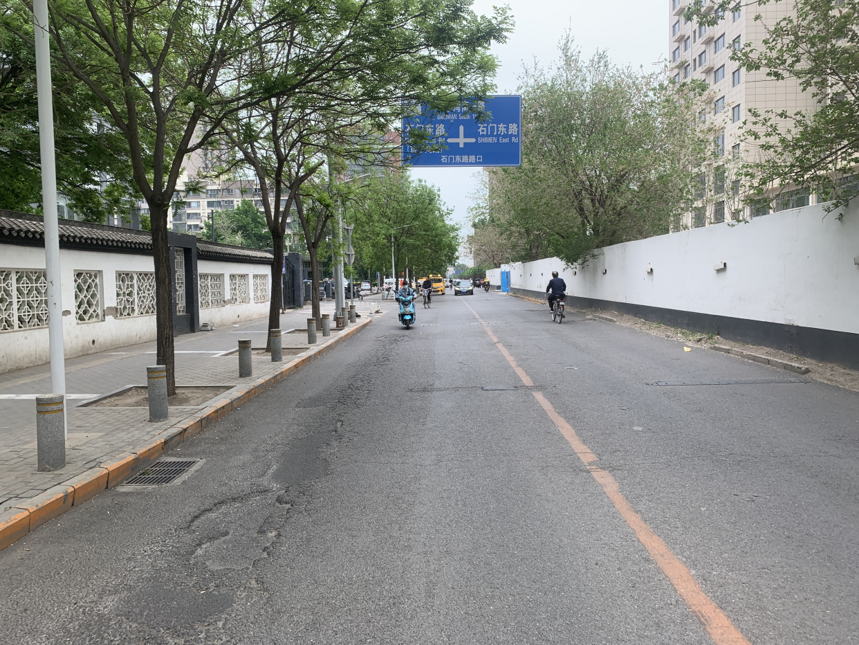 百子湾南一路为南磨房地区内一条重要的城市道路,本次工程的起止点为石门中路至石门东路,养护改造后的沥青路面黝黑、平整,刚刚施划的标识标线十分醒目,经过科学规划,道路两侧增设非机动车道,南侧路边还增加了新的青砖人行步道,真正实现人、机、非分流,三者各行其道,道路十分通畅。