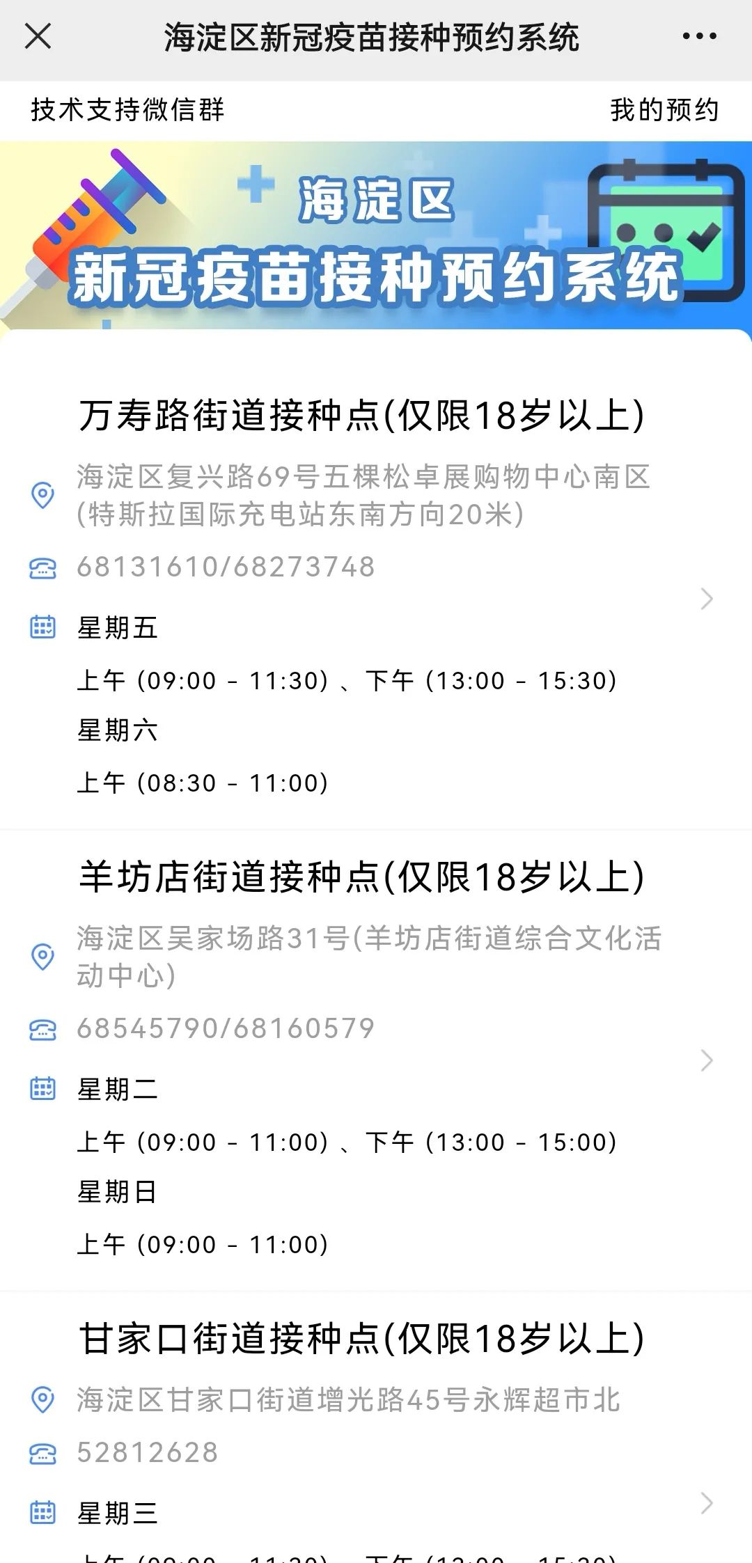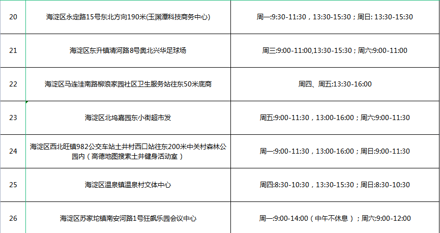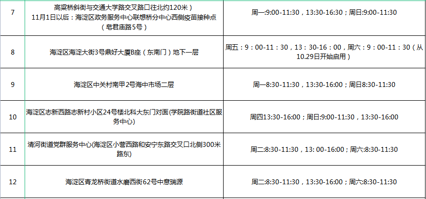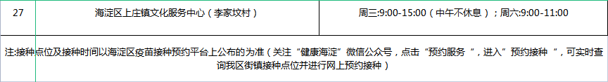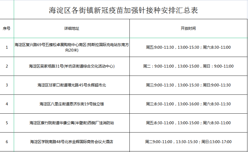 海淀区各街镇接种点信息如下: