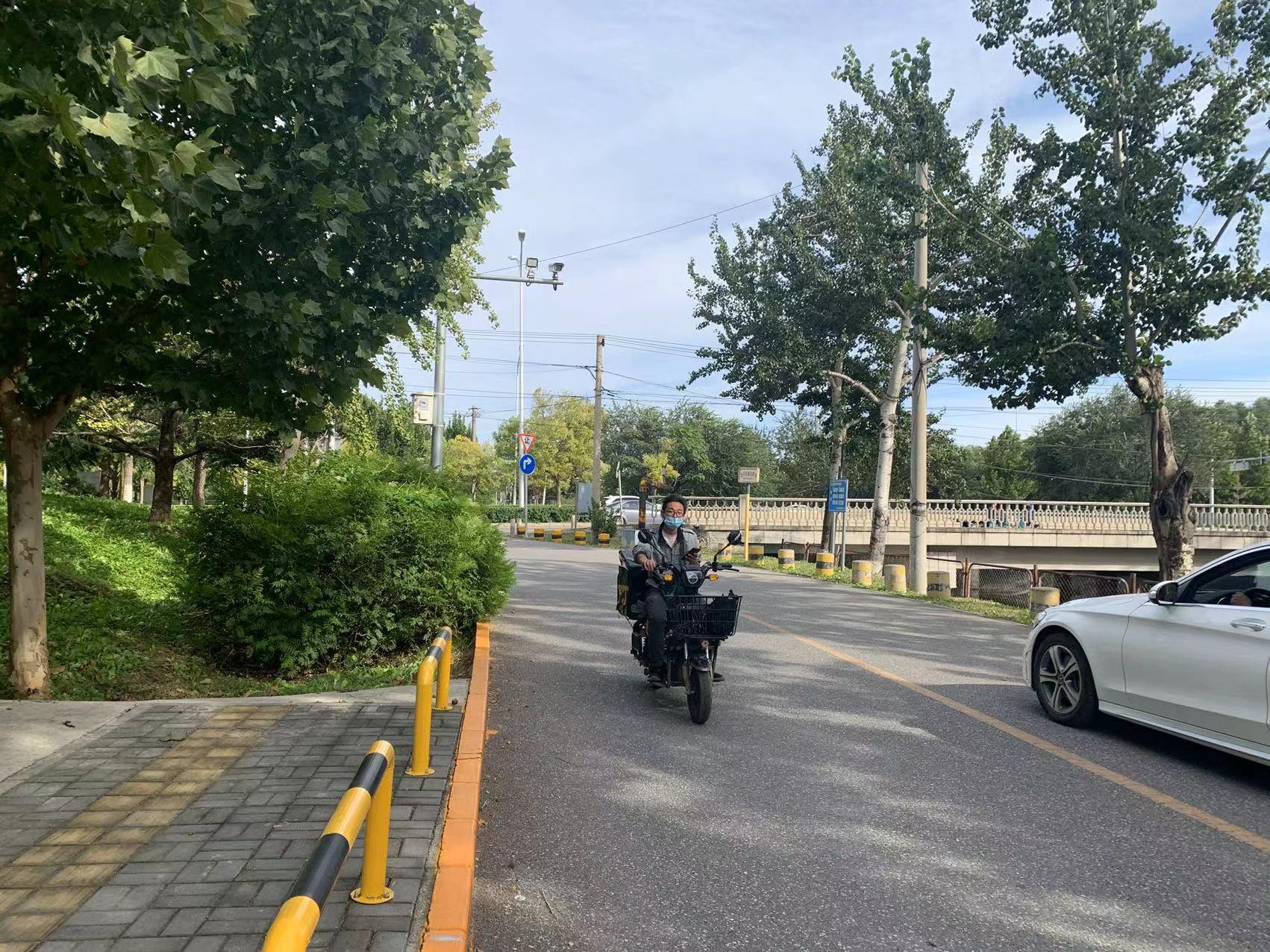 10月10日,记者来到永引渠北路,这条路紧邻永定河引水渠,呈东西走向,是双向两车道,只有北侧修建有人行道,因此,往来的行人都靠着北侧人行道行走。