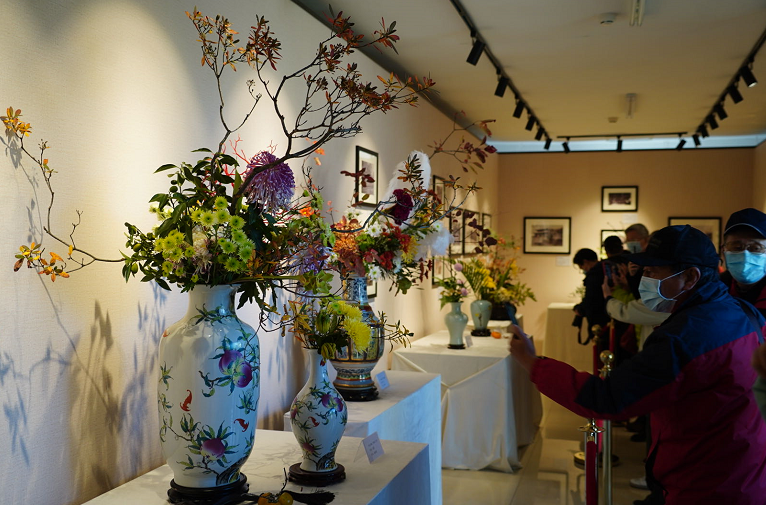 除了中国名优传统菊花品种,宫廷插花也风格独特。记者在现场看到,现场重点展示以菊花为主花材的插花作品,突出体现宫廷插花的端庄华贵,富有美好寓意的特色,将植物、容器、配件和环境有机地融合起来。