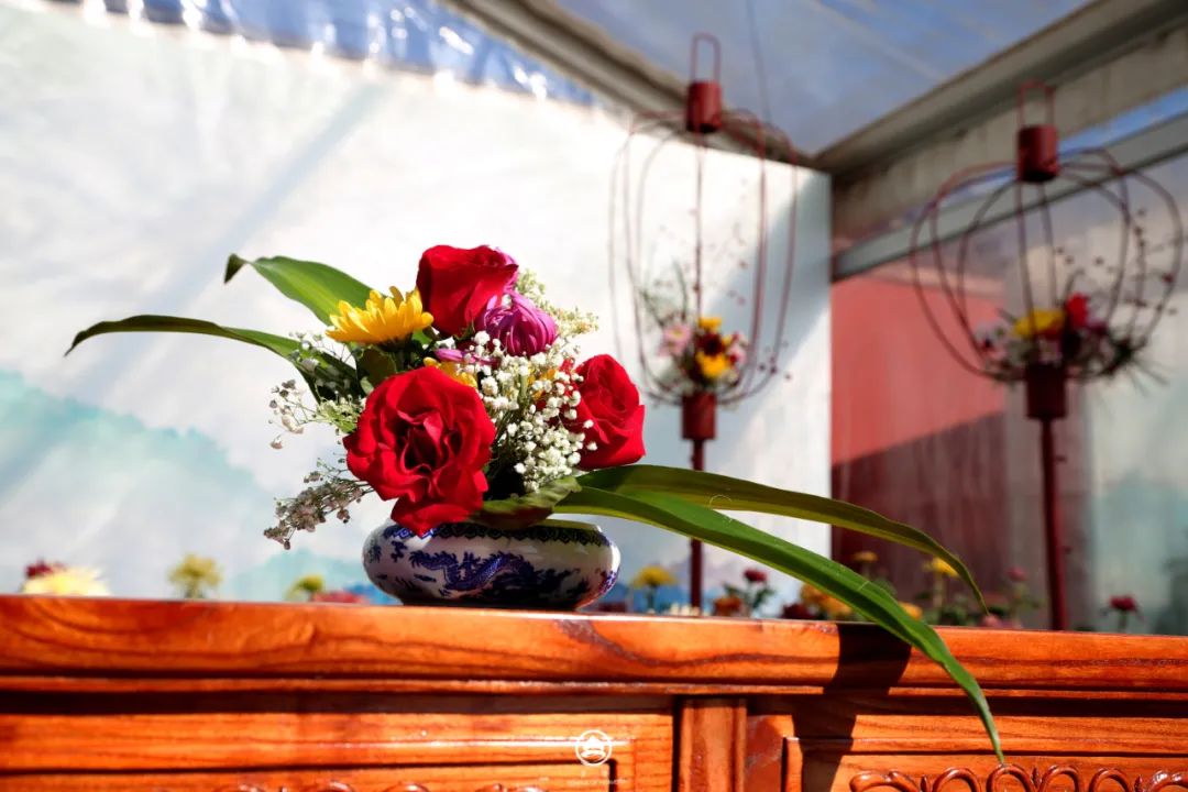 塔菊、画案、宫灯相交相融,与背景远山与案头丹青构成了沉浸式空间,让人似是作画者,又是赏花人,捕捉到身临其境的那一刻时回味无穷