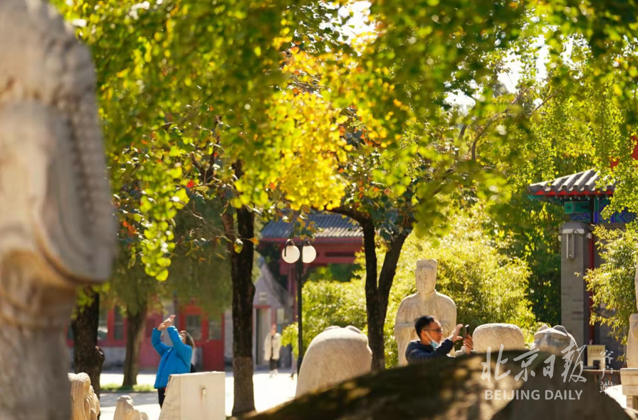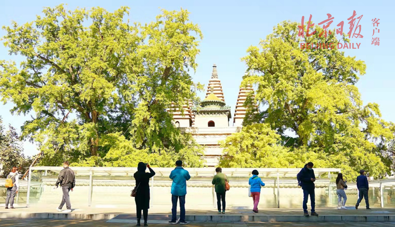 伴随着京城秋色渐浓,近日位于海淀区西直门外白石桥以东长河北岸的五塔寺成为市民与游客的秋景打卡地。
