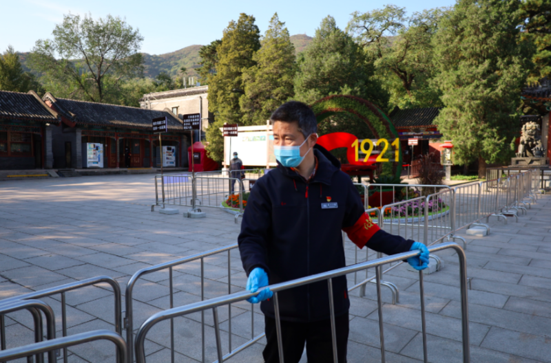 每年的香山红叶观赏期都会吸引大批游客前来,为了让游客能快速入园,宋国刚和同事们在入园通道上也下了功夫。在广场的北侧,公园专门设置了隔离护栏,游客通过安检后直接进入护栏,沿着护栏引导的方向曲折前进,尽管入园线路略有拉长,但不会造成滞留。