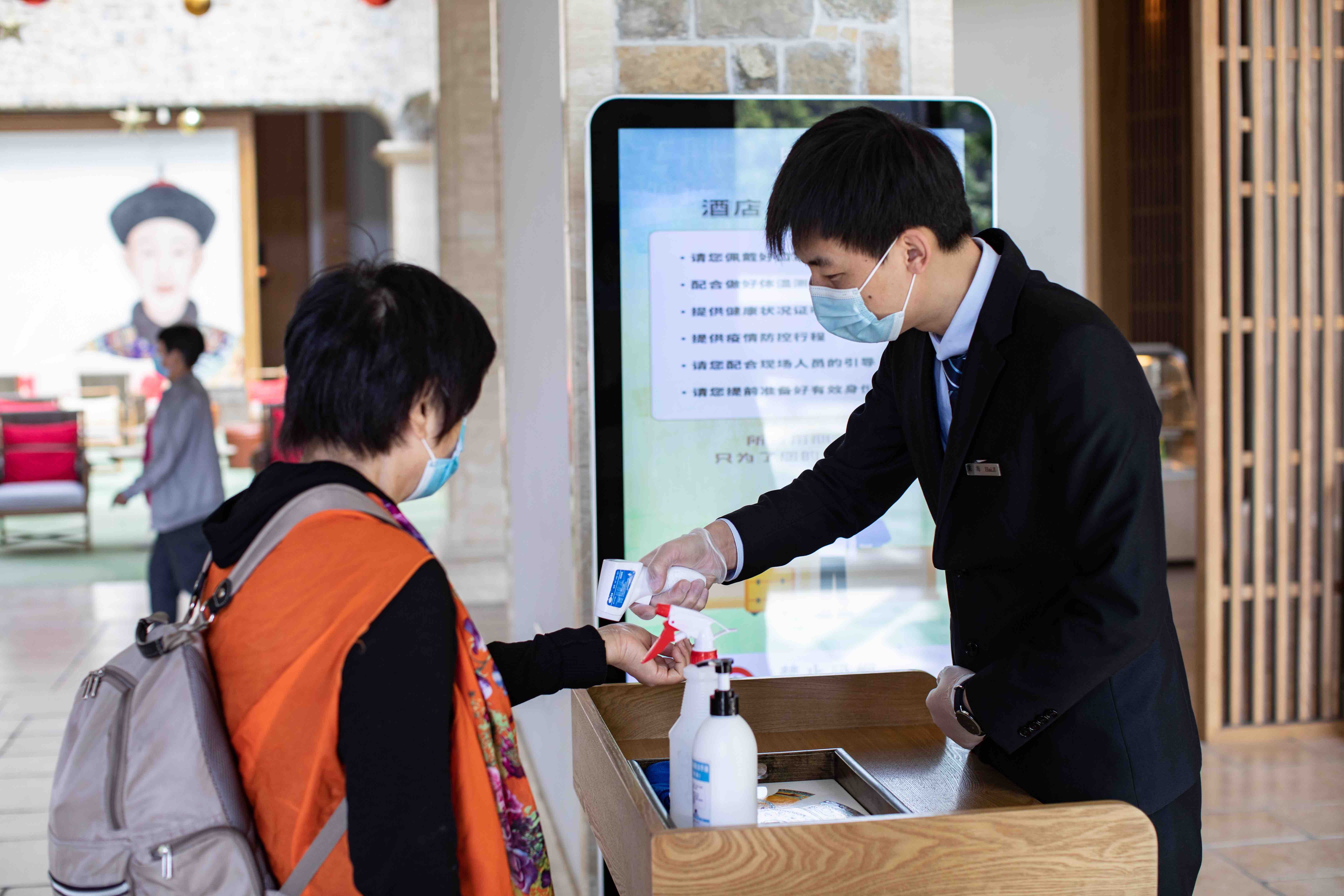 景区成立专门消毒工作组,每日对办公区、游览区、游客服务中心、室内游览场所公共卫生间等公共区域进行清洁和检查,按照疾控中心最新的消毒标准进行消毒,并做好记录。