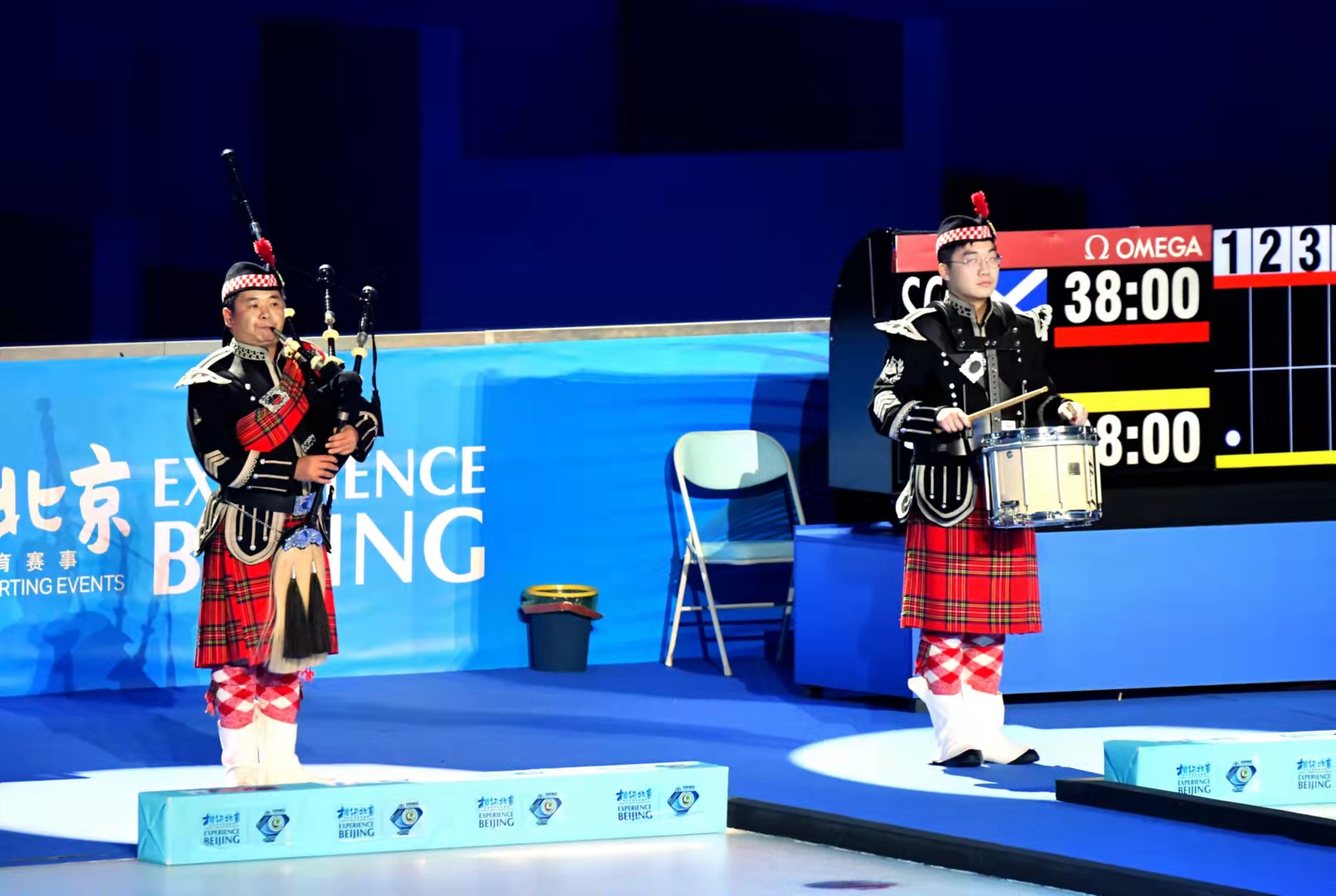 强烈的视觉冲击后,两名身着苏格兰传统服装的乐手走上赛场,用苏格兰风笛和军鼓奏出一首悠扬的《勇敢苏格兰》,现场进入介绍参赛队伍的环节。在这之后,精彩的比赛,就要开始了!