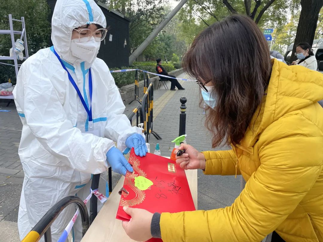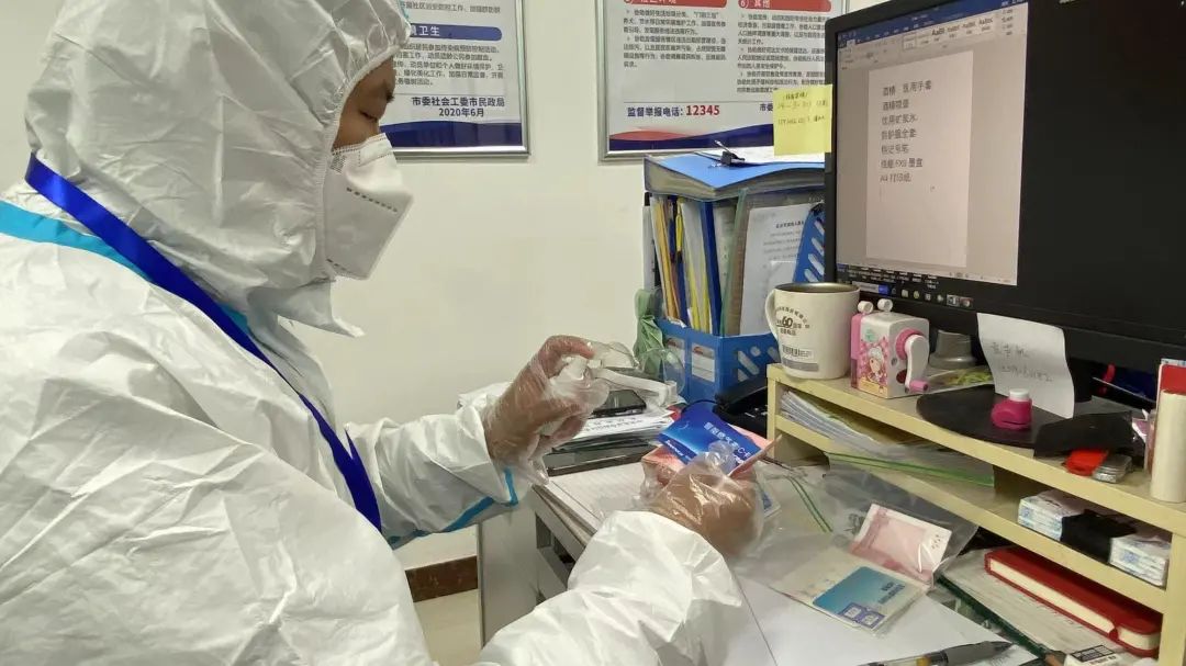 “您别着急,我们帮您代买。”王晓霞一边安抚居民,告知流程,一边安排专人,前去居民家中取来燃气卡、现金,以及需要购买的数量、地址、联系方式。这些东西都被密封在一个小塑料袋中,经过社工反复消毒之后,再由专人外出购买,次日消毒后再交还到居民手中。据居委会介绍,10月25日当天,共有6号楼、7号楼两户居民有购买燃气需求。
