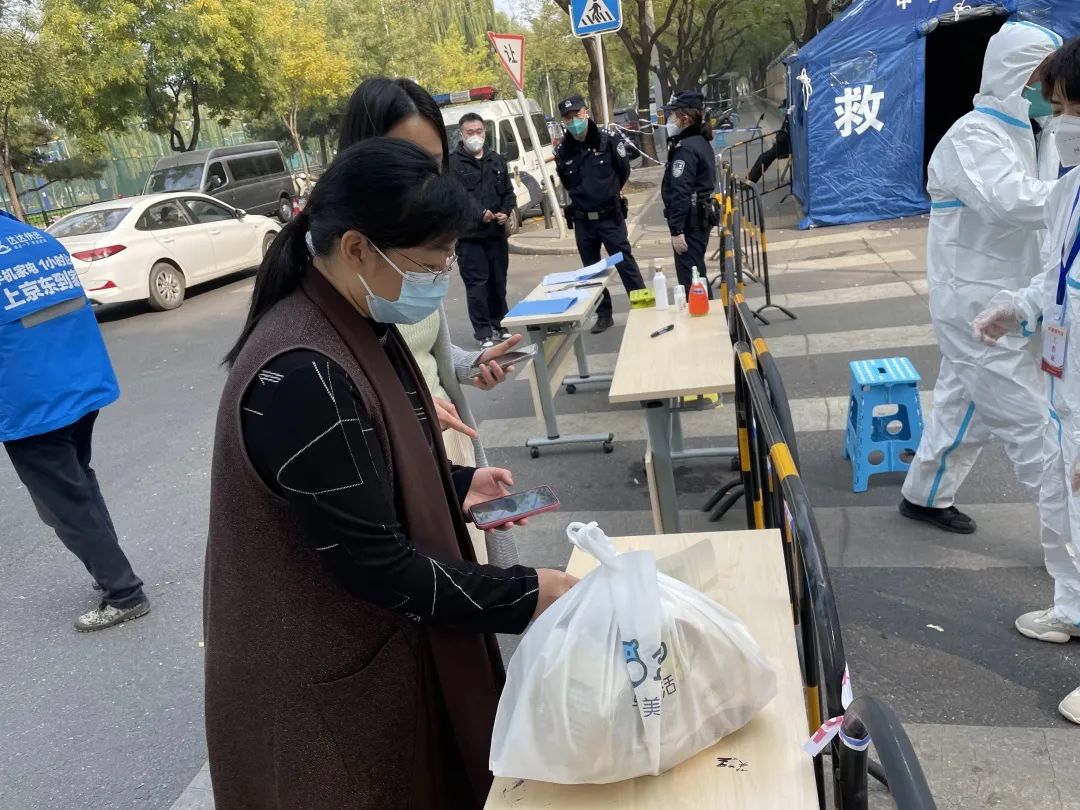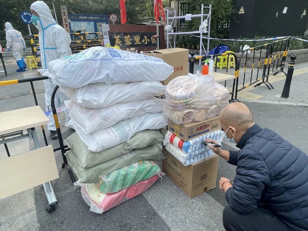 10月25日,是海淀区芙蓉里社区(西区)封控的第二天。记者来到小区门外看到,这里拉起了警戒线,北门出入口有专人值守。海淀街道第一时间组织220名在职干部全体下沉,第二批300余名志愿者、社工,作为储备力量,随时准备下沉。现在小区内每栋楼都建立了微信群,居民在群里发需求单,专人专车运送生活物资。街道已与超市发建立居民线上购买服务专线,居民的食品等生活必需品由超市发统一配送,个性化物资可以在网上自行订购。