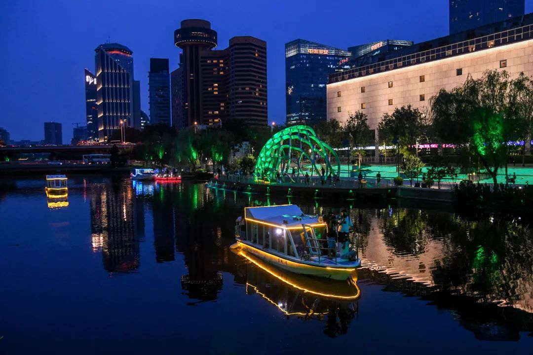 近年来,朝阳区实施水利生态、景观绿化和夜景照明建设等工程,亮马河已初步形成水绿交融、夜色柔美的景观廊道。