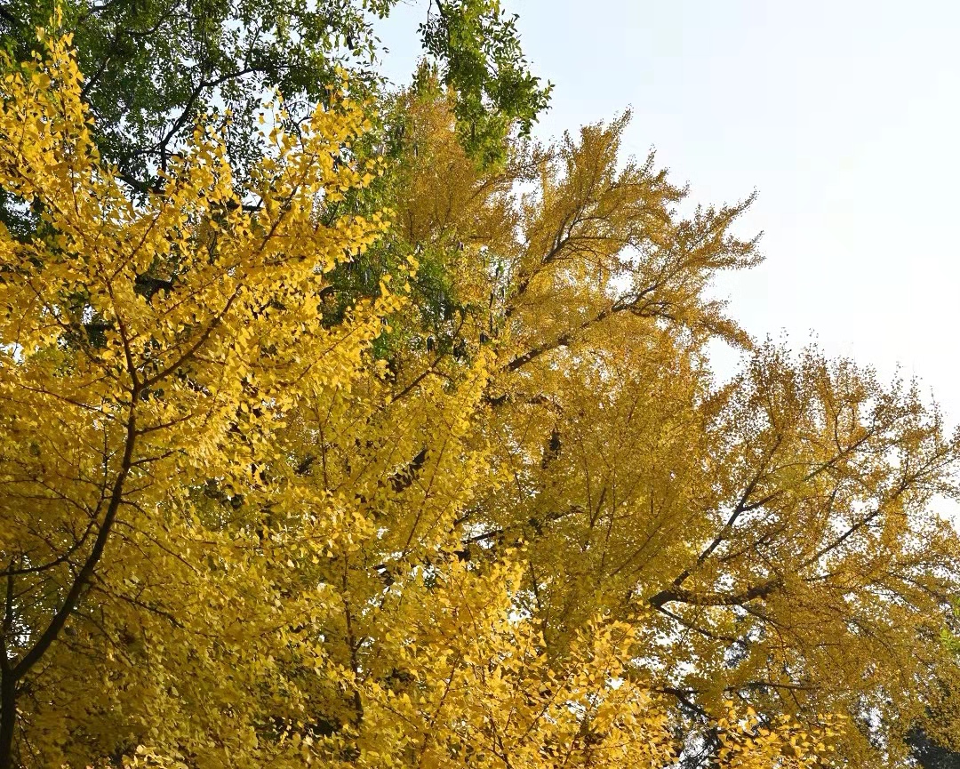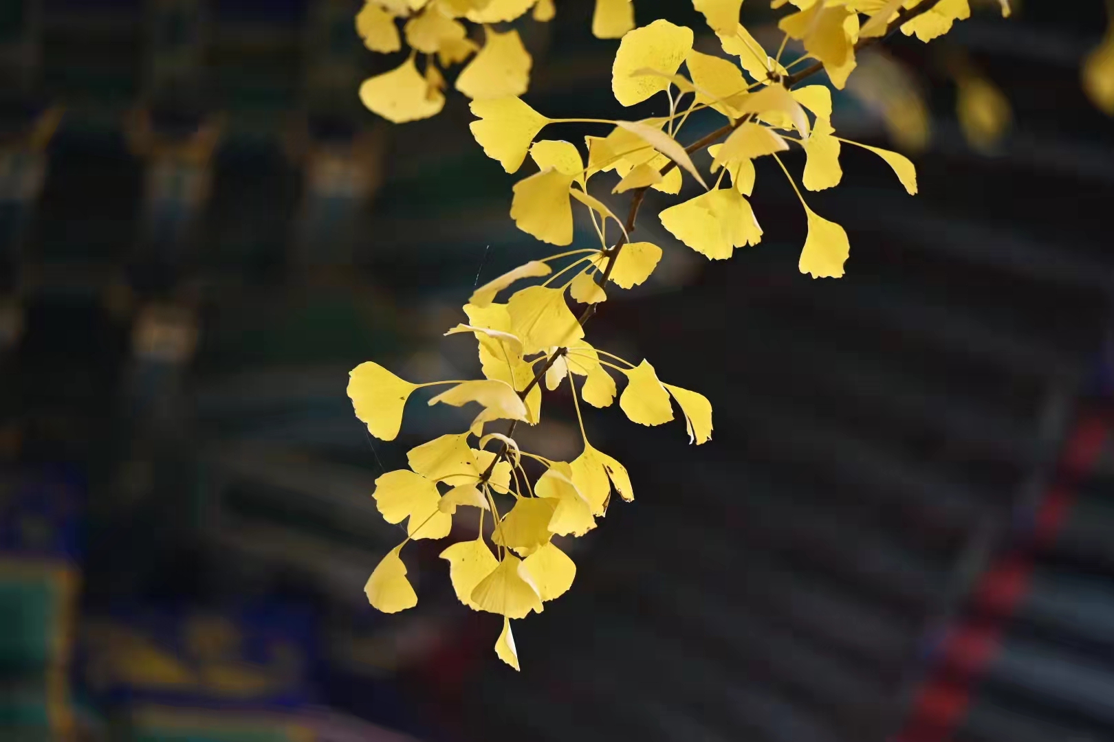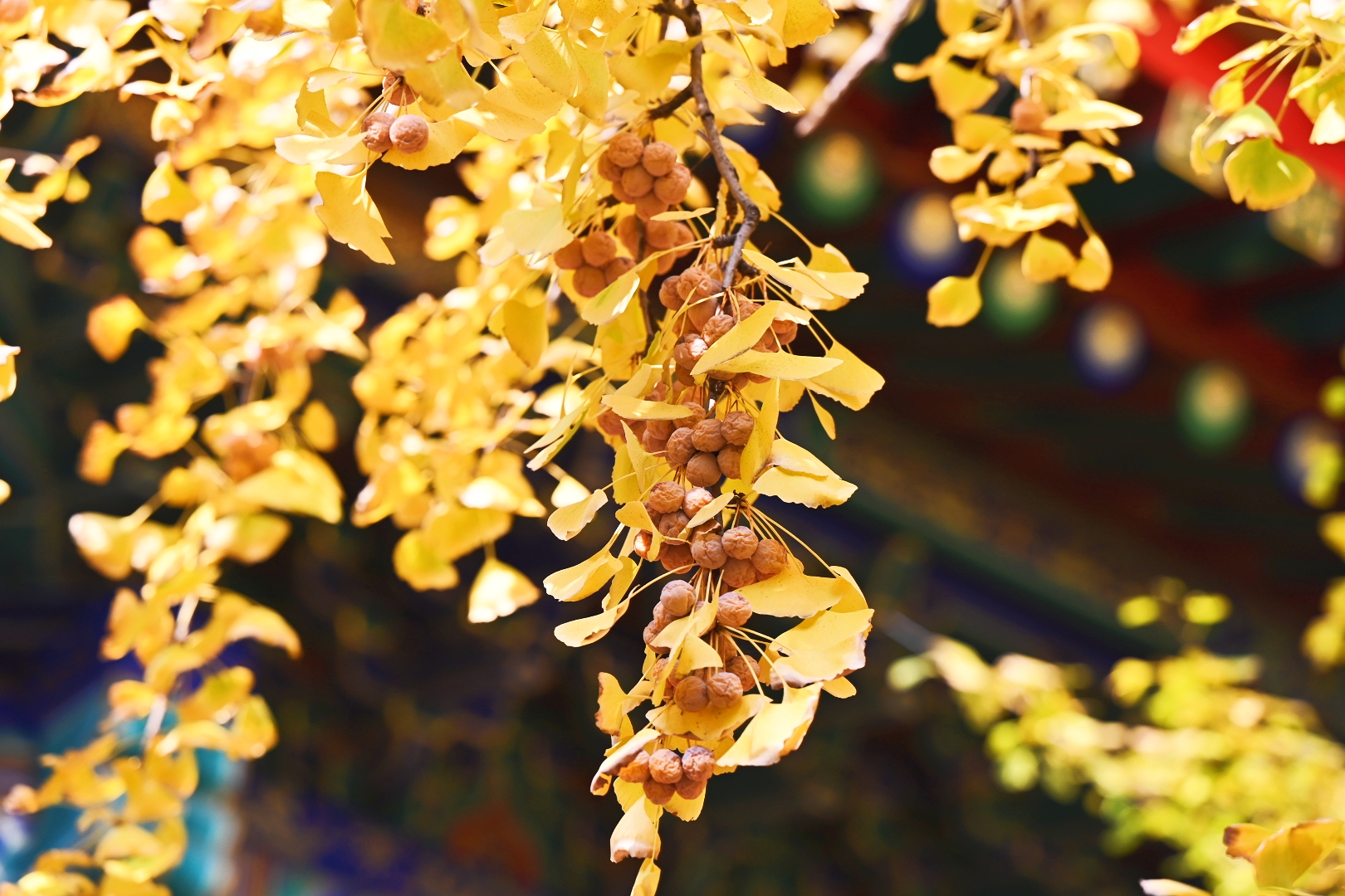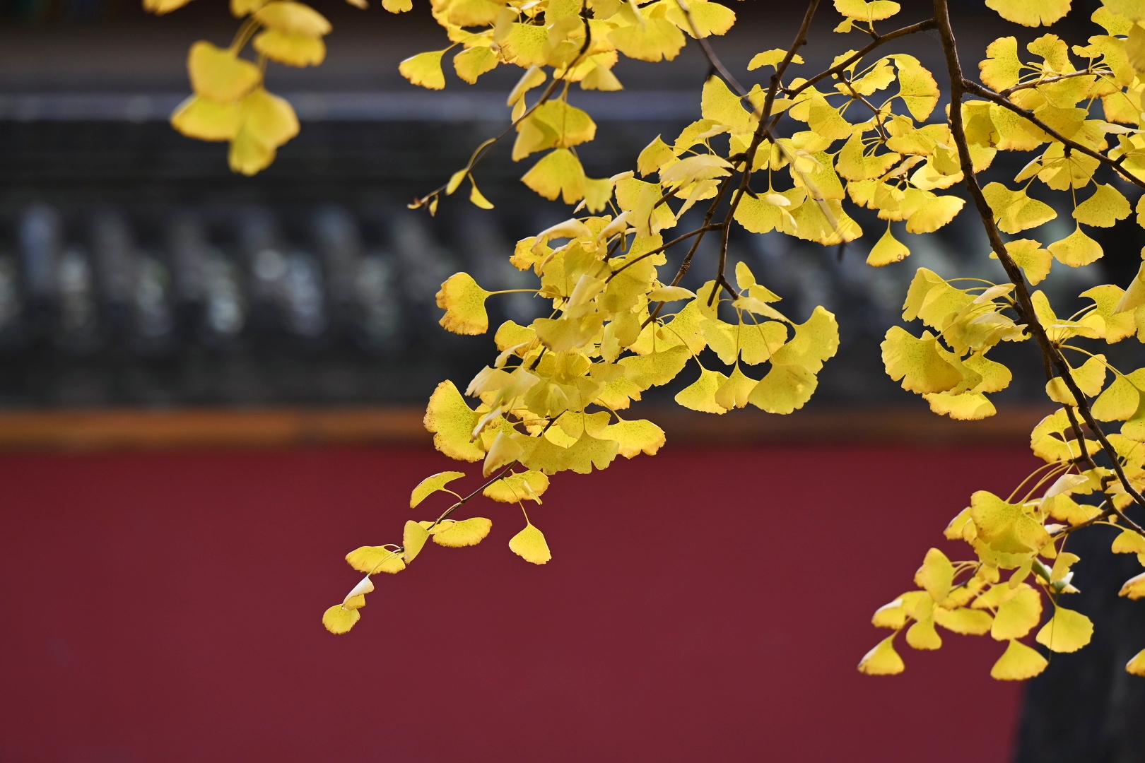 秋意正浓时,卧佛寺内的银杏古树簇拥成片片明黄,当阳光透过茂密的枝叶与朱红的墙面上相互映照,如云如霞,光影斑驳。这才是北京的秋天!