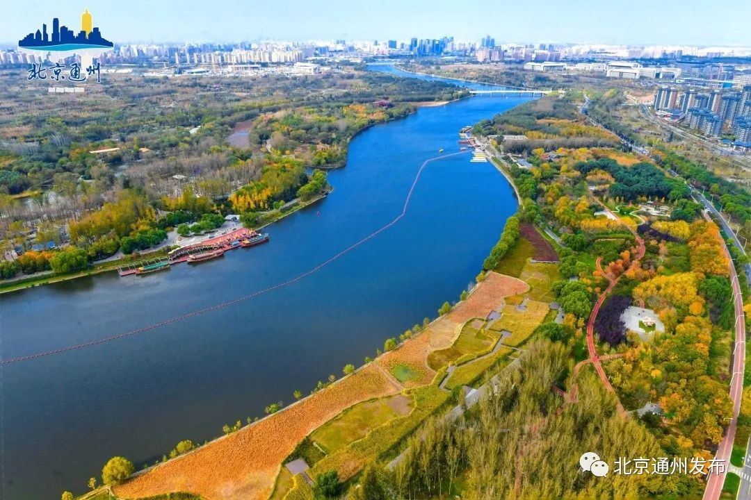 秋色正浓,层林尽染,碧波荡漾,从空中俯瞰北京城市副中心,林在城中,城在林中,林水交融,一幅水清岸绿的“千年之城”生态画卷正徐徐展开~
