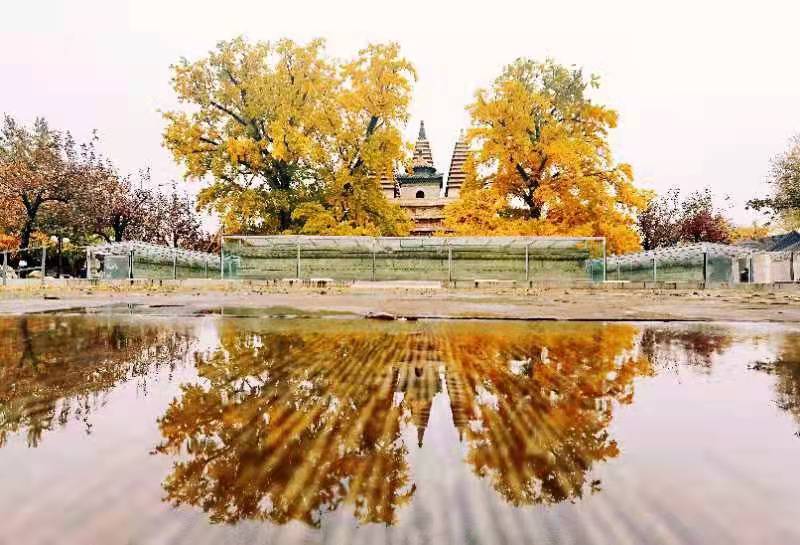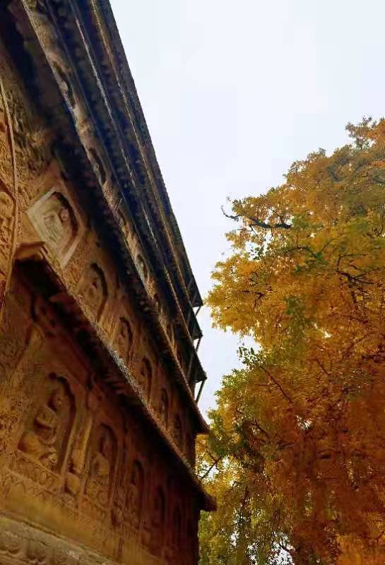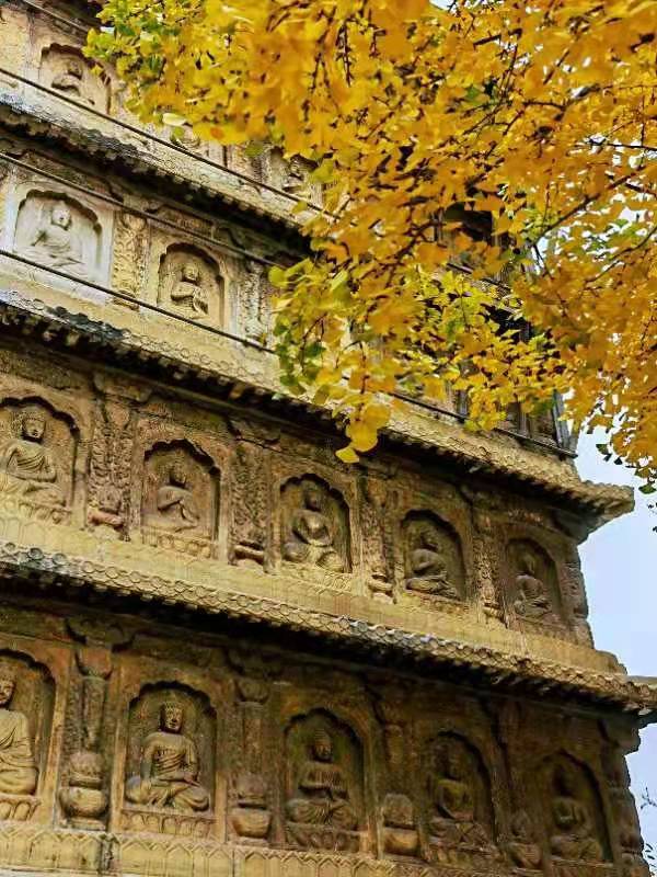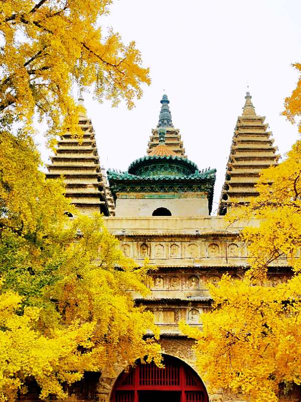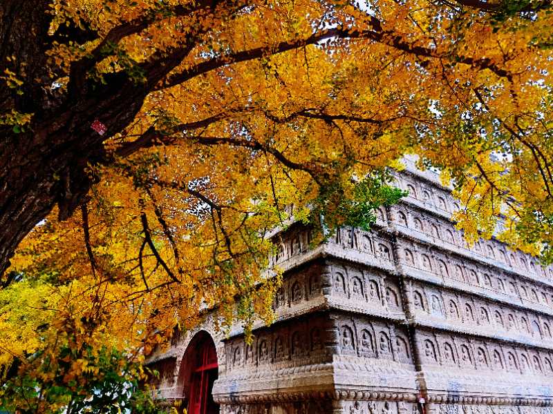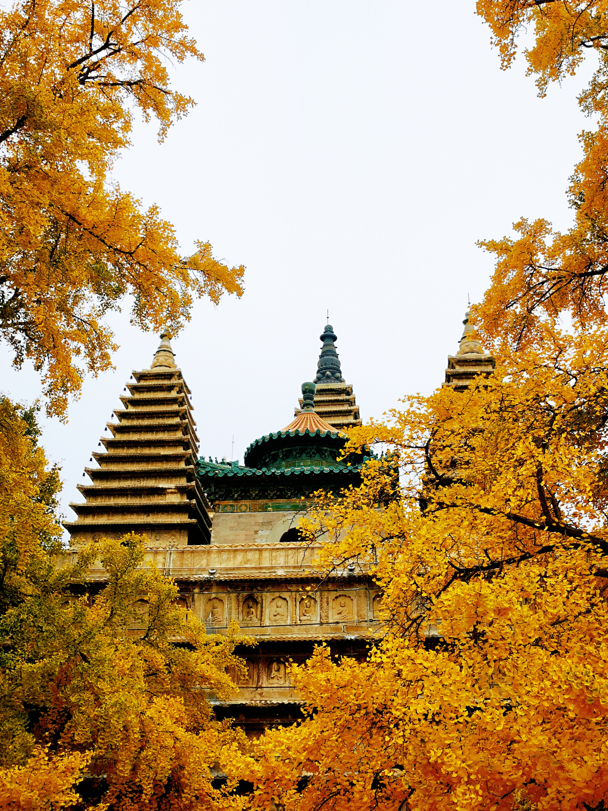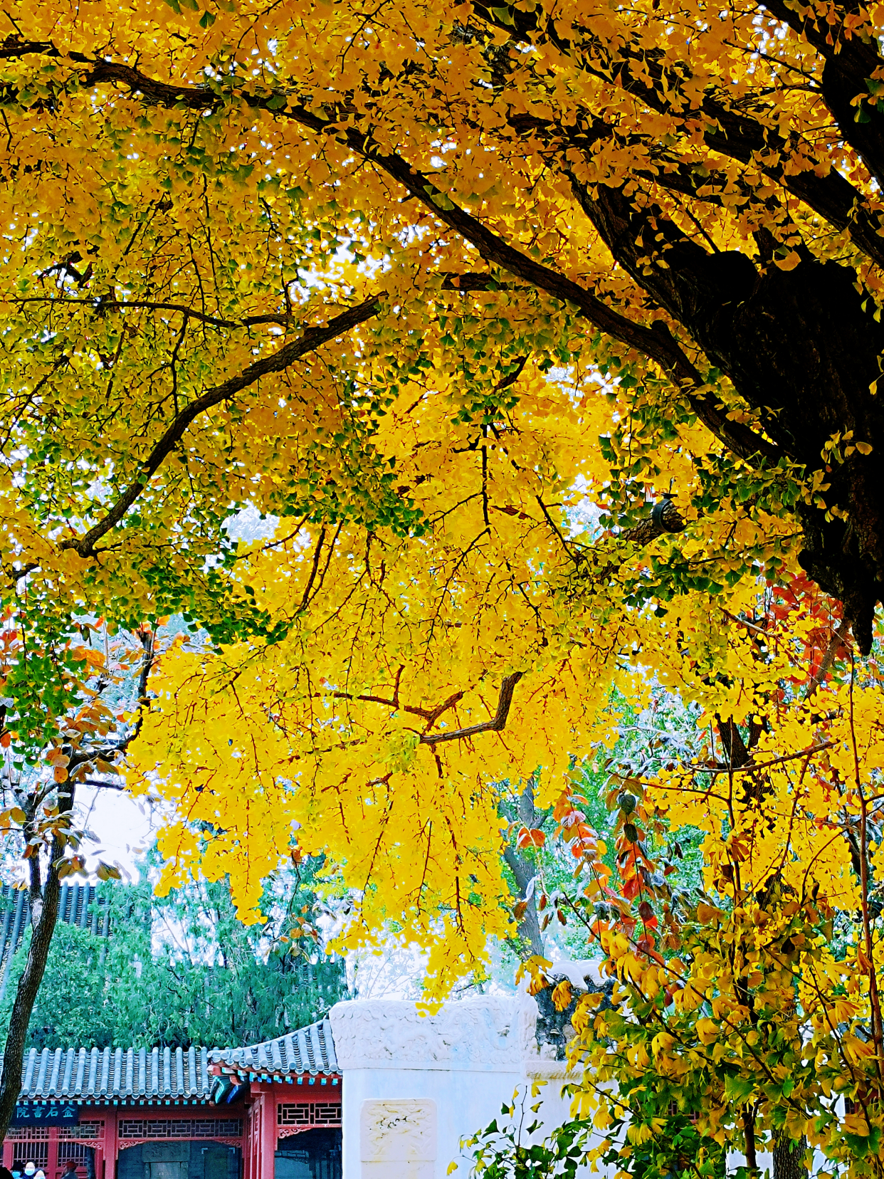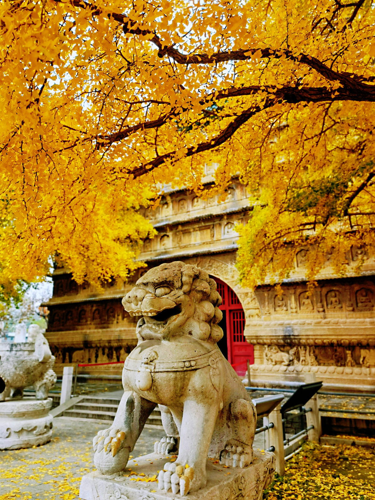 深秋,北京的五塔寺,金黄的银杏叶挂满枝头与巍峨的古塔交相辉映,在阳光的映射下,砖石、塔身仿佛被罩在一层金光中,形成一幅金碧辉煌的古老画卷,营造出了北京深秋最美的风景,胜过无数人间仙境!