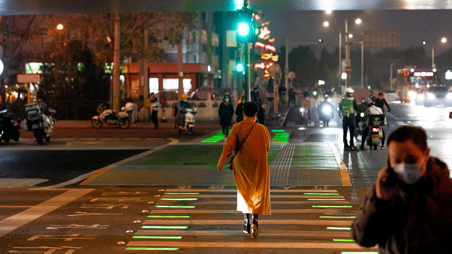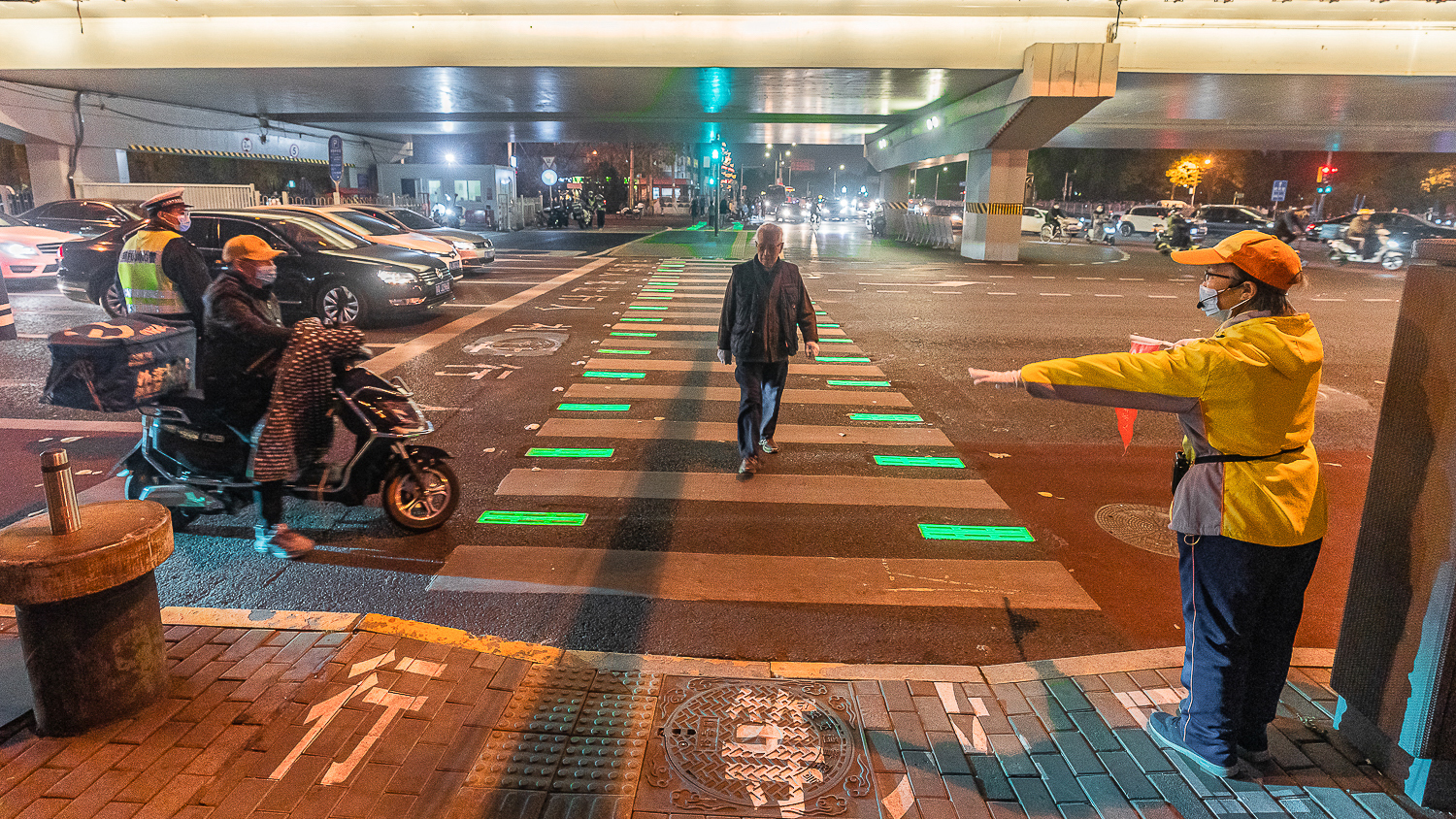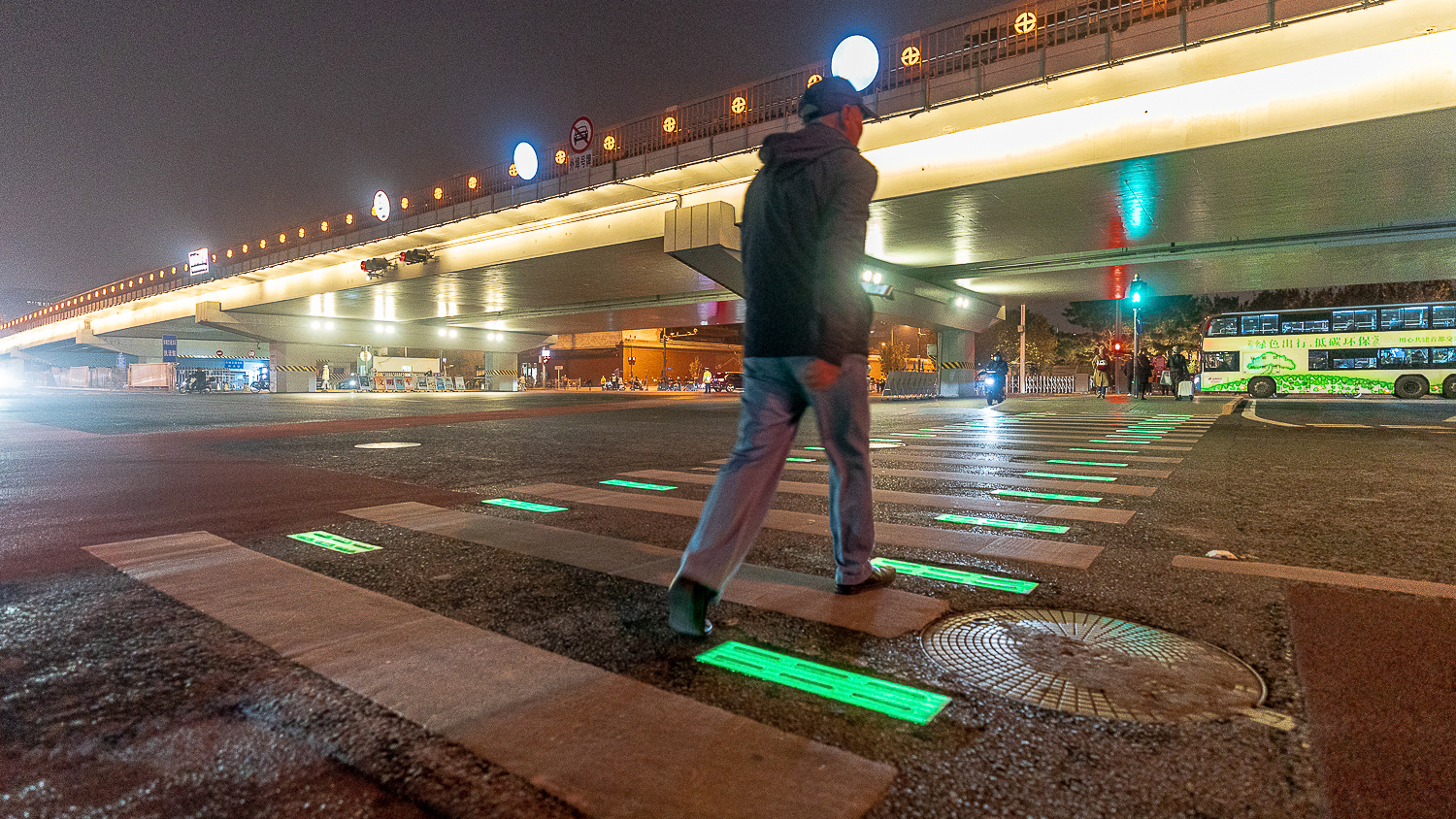 在雍和宫桥区安装智能发光斑马线,对过往车辆礼让斑马线起到警示作用,保障行人安全。