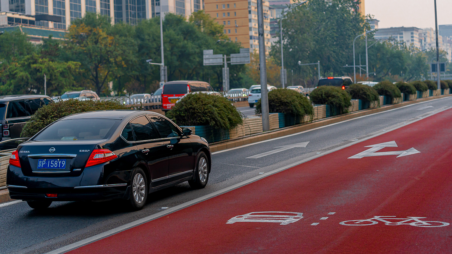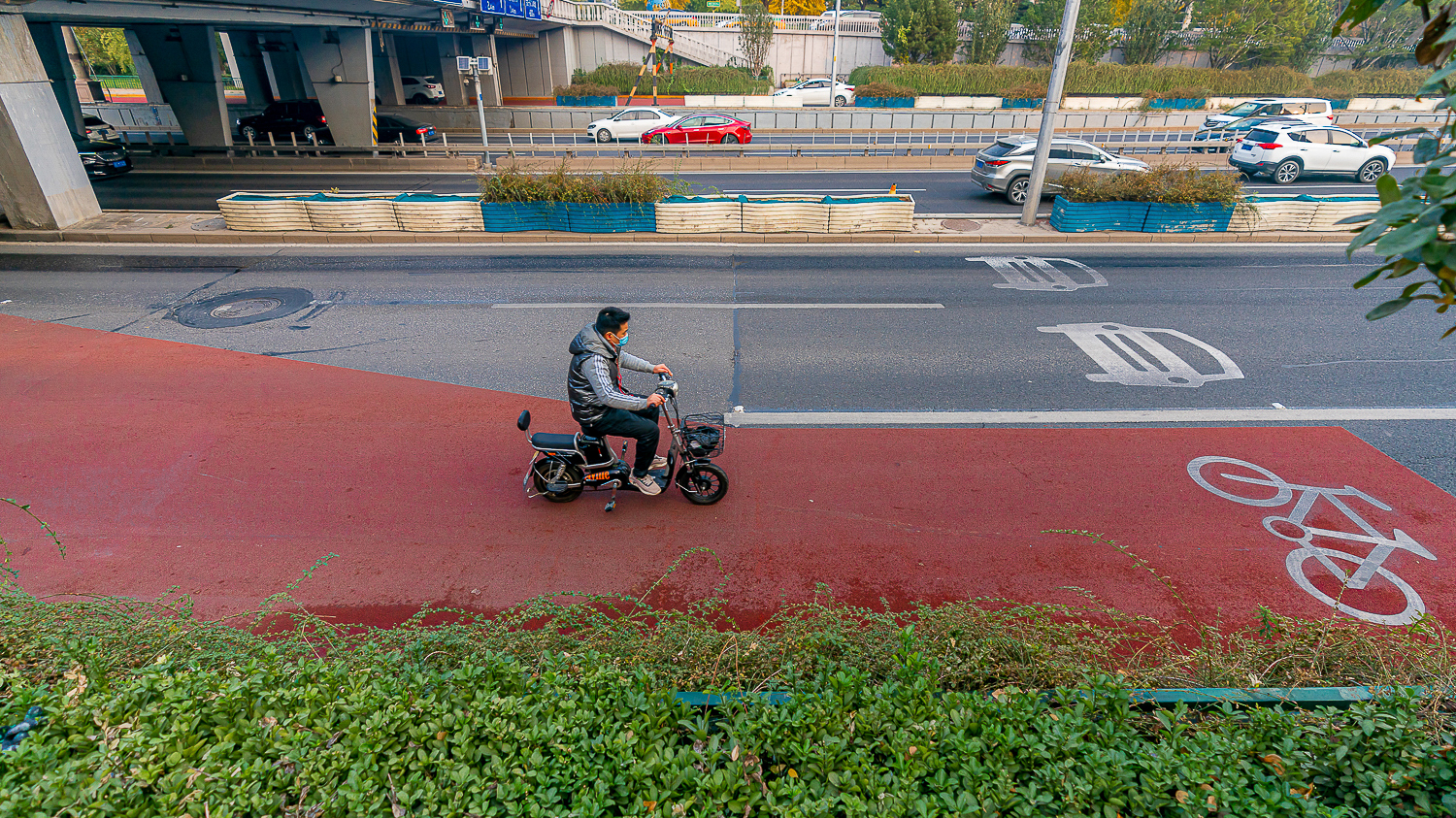 工程对北二环鼓楼桥至东直门桥段,东二环东直门北桥至左安门桥段,南二环左安门桥至陶然桥段进行了优化提升,调整机非共板道路比例,增加骑行空间,施划黄网禁停区域,铺装彩色路面并增设标识,明确机非混行区域非机动车路权绝对优先,提升非机动车出行的安全性和舒适感。