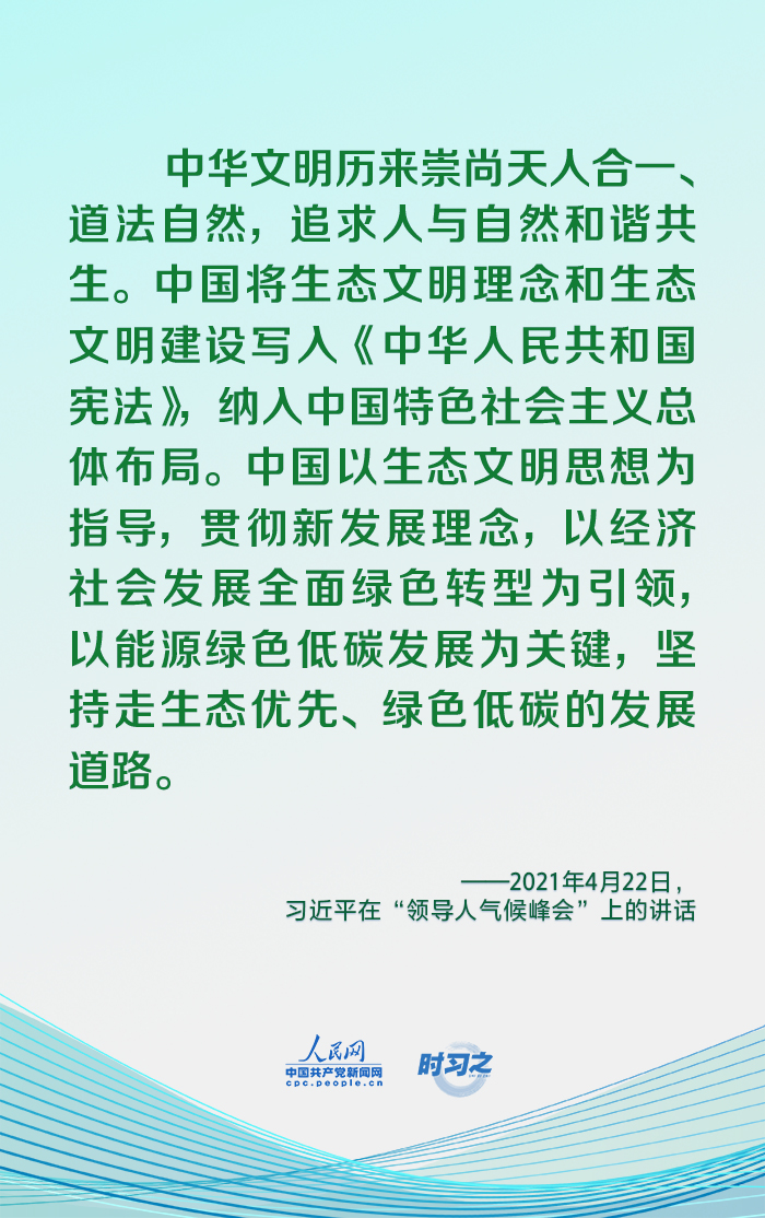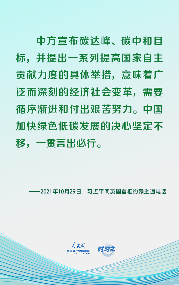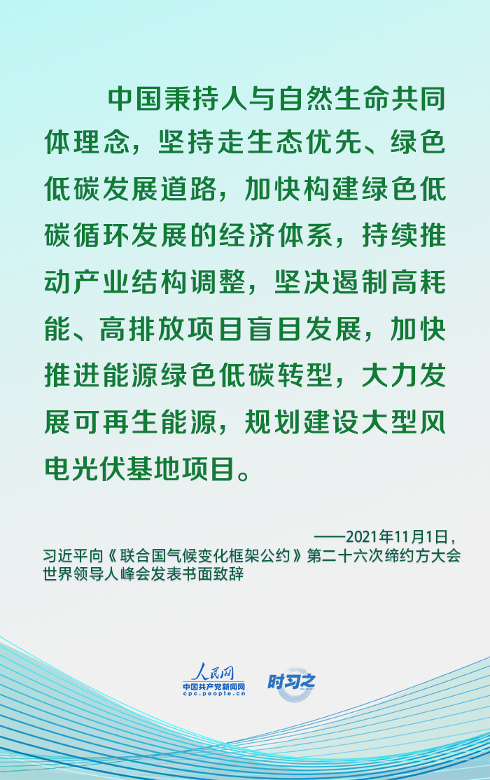 2021年11月1日,国家主席习近平向《联合国气候变化框架公约》第二十六次缔约方大会世界领导人峰会发表书面致辞。今年以来,习近平在多个场合一以贯之强调坚持走生态优先、绿色低碳发展道路。