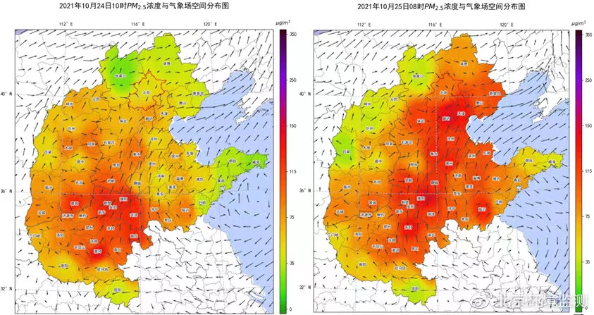 10月24-25日区域PM2.5浓度空间分布