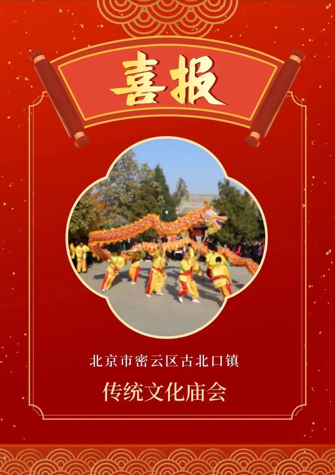 为了推动发展社会主义先进文化,弘扬社会主义核心价值观和中华优秀传统文化,繁荣发展民间文化艺术,文化和旅游部办公厅启动开展“中国民间文化艺术之乡”评审命名工作。经评审和公示,近日文化和旅游部公布了名单。其中,北京市密云区古北口镇(传统文化庙会)荣获2021—2023年度“中国民间文化艺术之乡”称号。该称号期限为3年。
