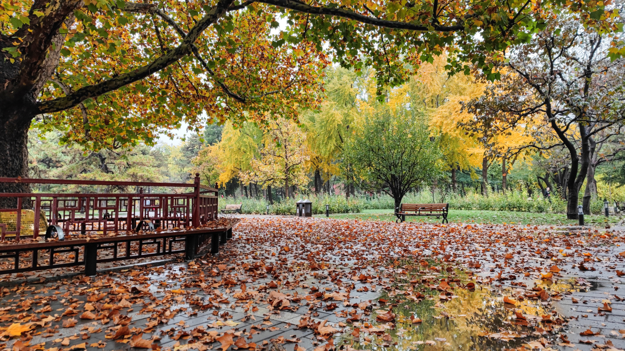 落叶知秋,北京雨中的落叶如此美丽!