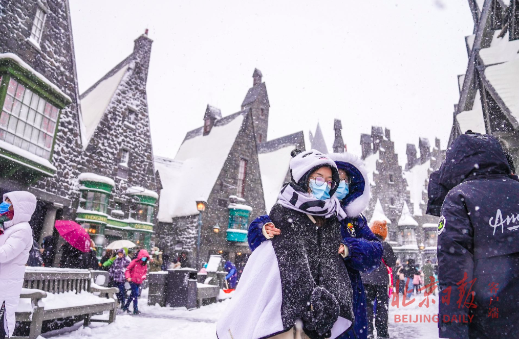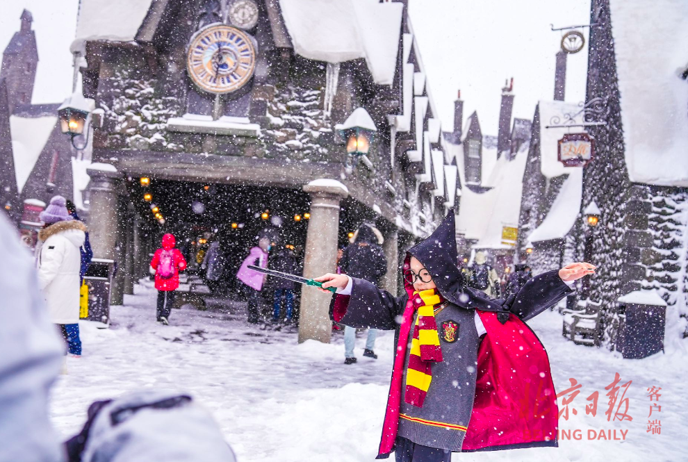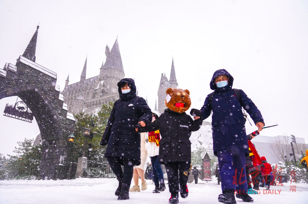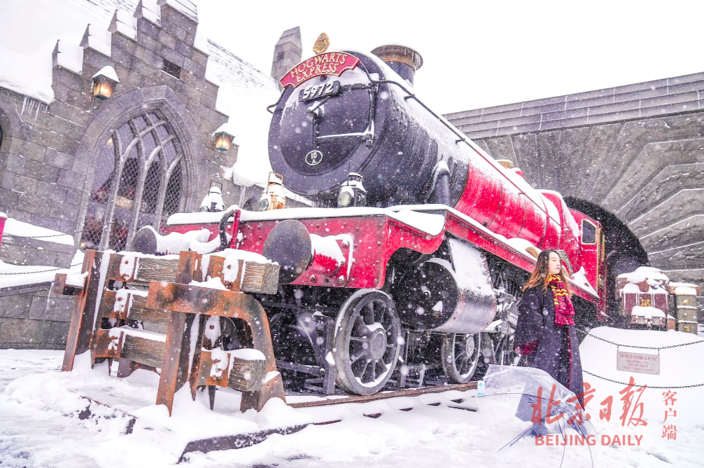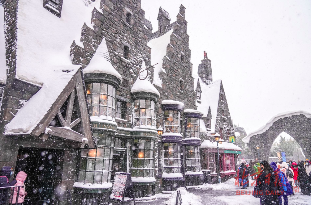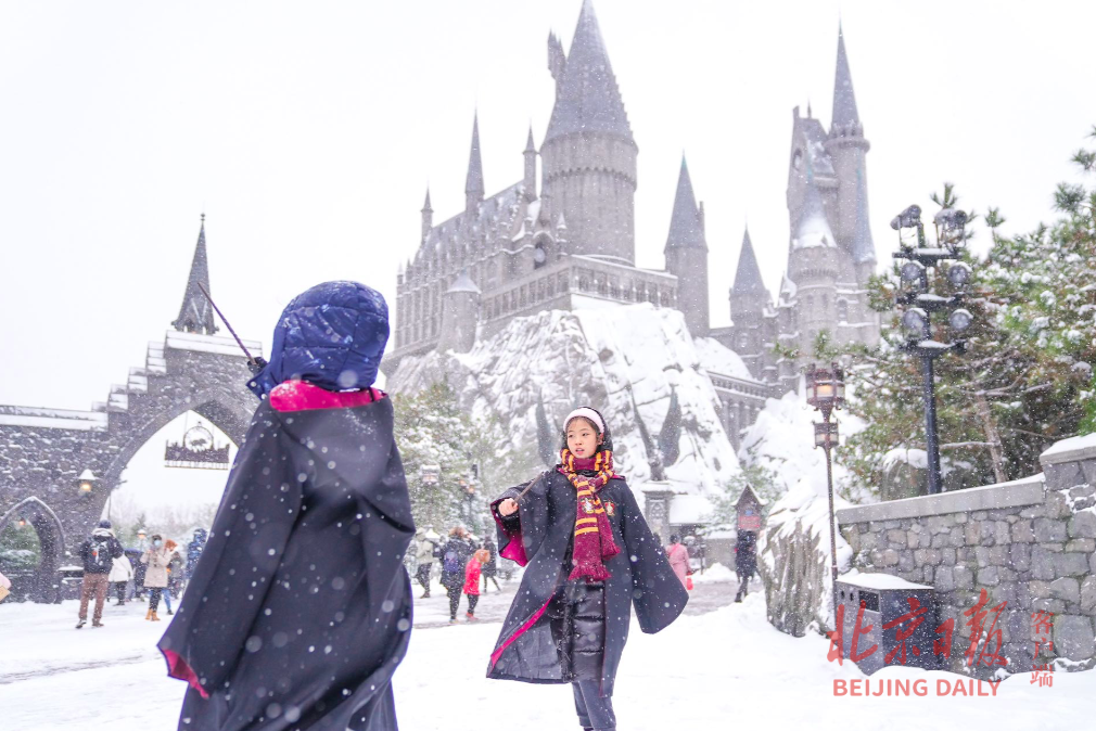 今天(11月7日),北京迎来2021年冬季第一场雪,全城银装素裹。北京环球度假区哈利波特的魔法世界景区在漫天飞舞的大雪中别具魅力,游客徜徉在雪中的霍格莫德村、霍格沃茨城堡,如同进入了真正的电影世界。