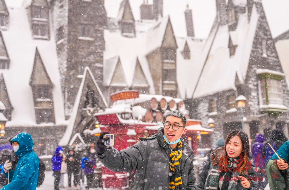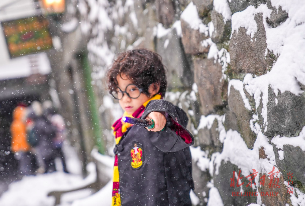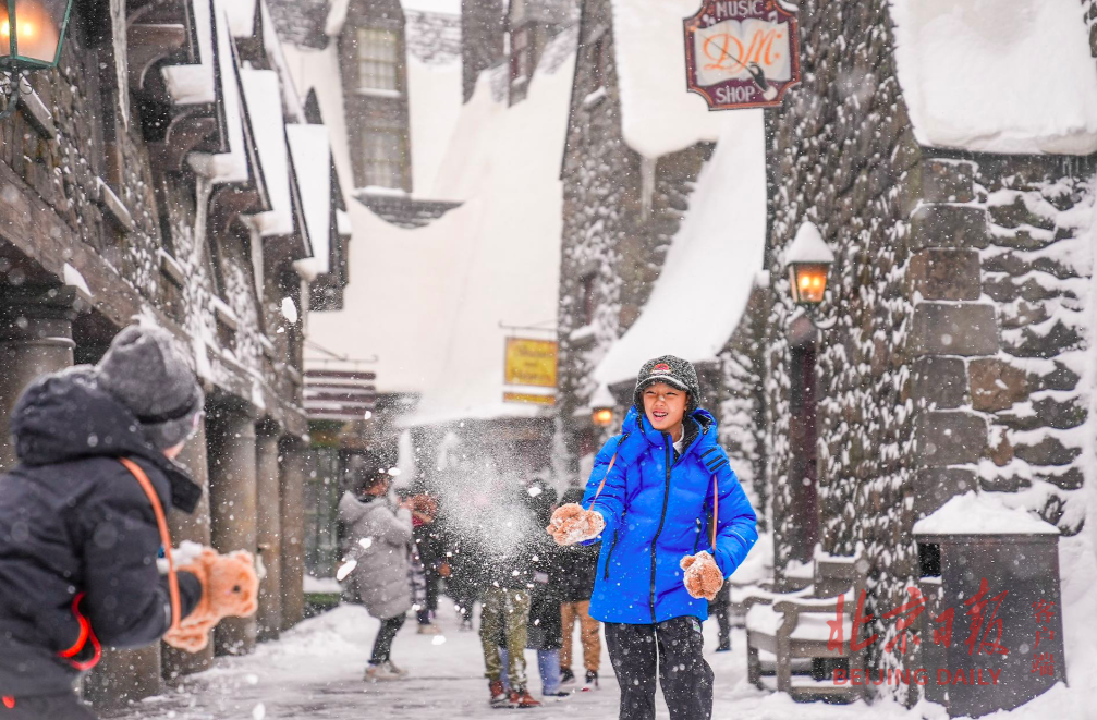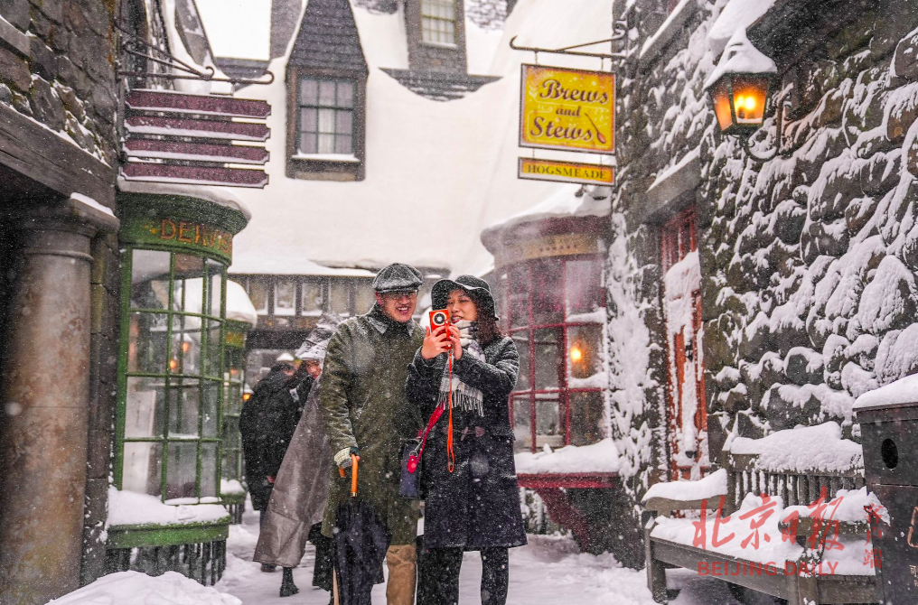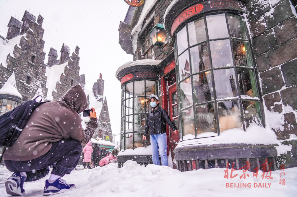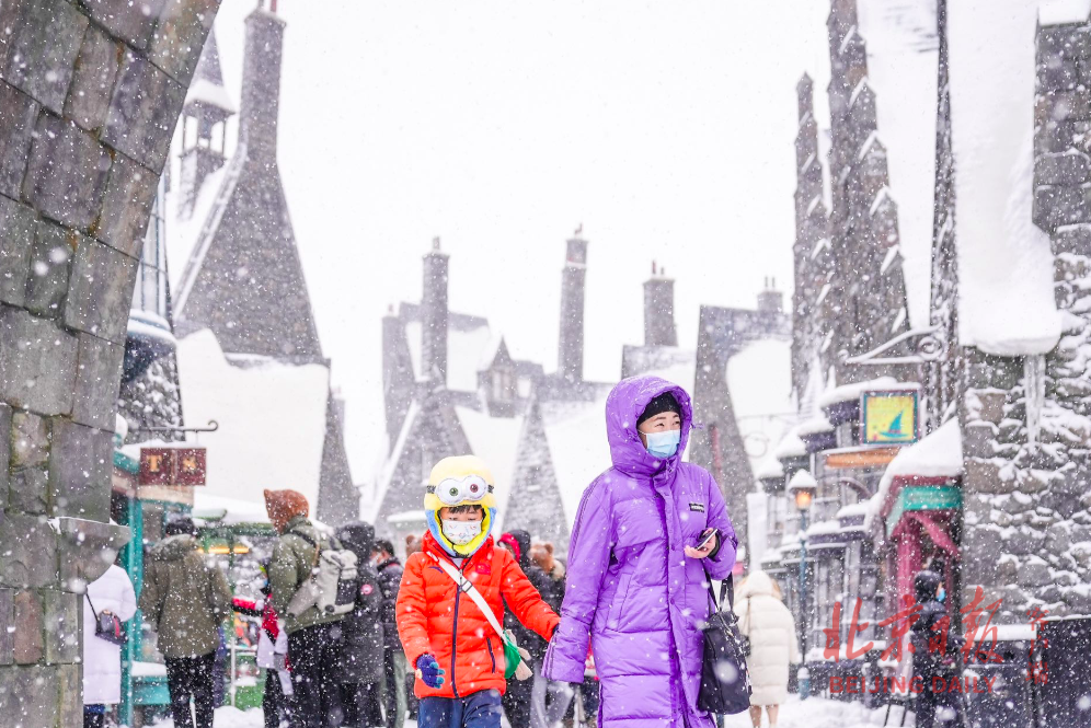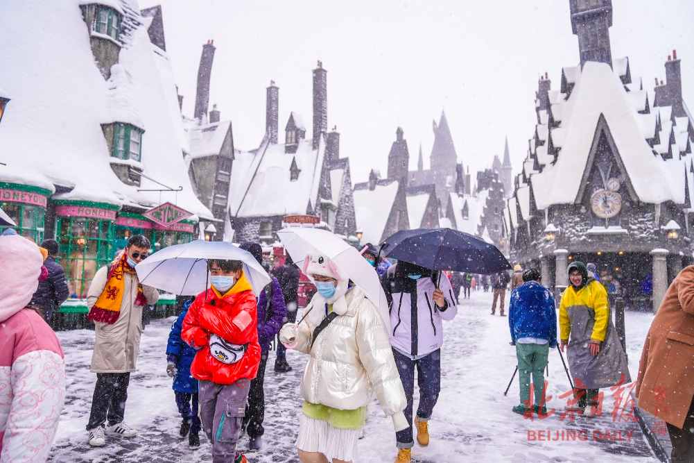 今天(11月7日),北京迎来2021年冬季第一场雪,全城银装素裹。北京环球度假区哈利波特的魔法世界景区在漫天飞舞的大雪中别具魅力,游客徜徉在雪中的霍格莫德村、霍格沃茨城堡,如同进入了真正的电影世界。
