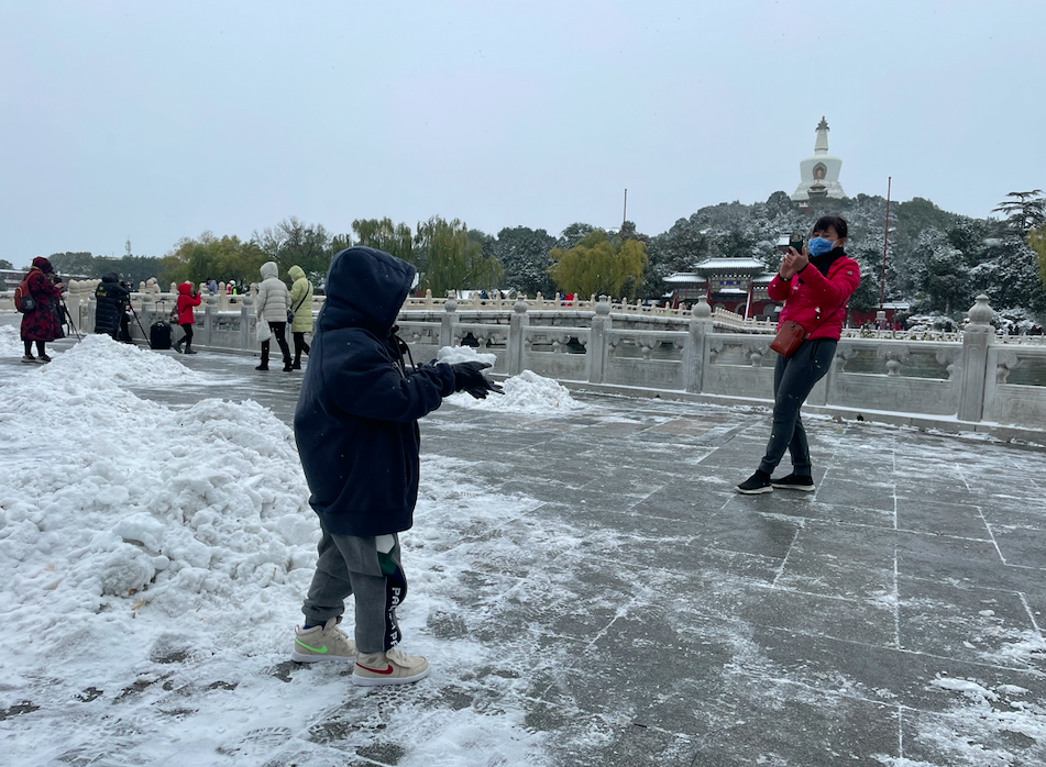 北京的这场雪不光“下”在了朋友圈。今天下午,雪停之后天气转好放晴,不少市民纷纷走出家门、走进各大公园,“赶趟儿”赏雪。