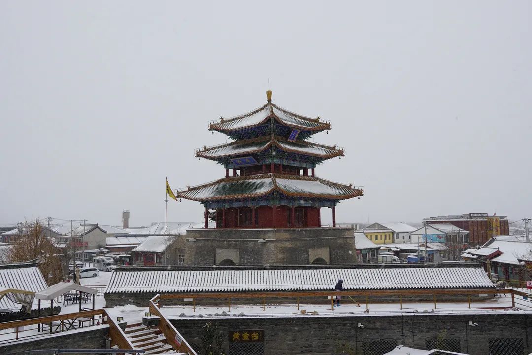还有远方的古城村落,青砖灰瓦被清雪装扮,多了一分古韵流芳,昔日喧闹的景区,也悄悄收起红妆换上一袭洁白,静谧悠扬......