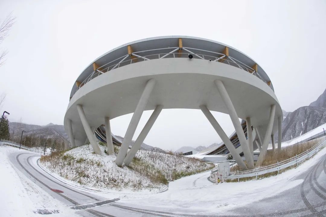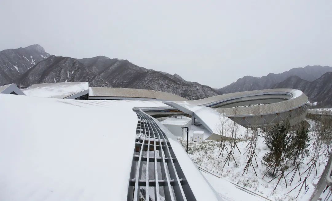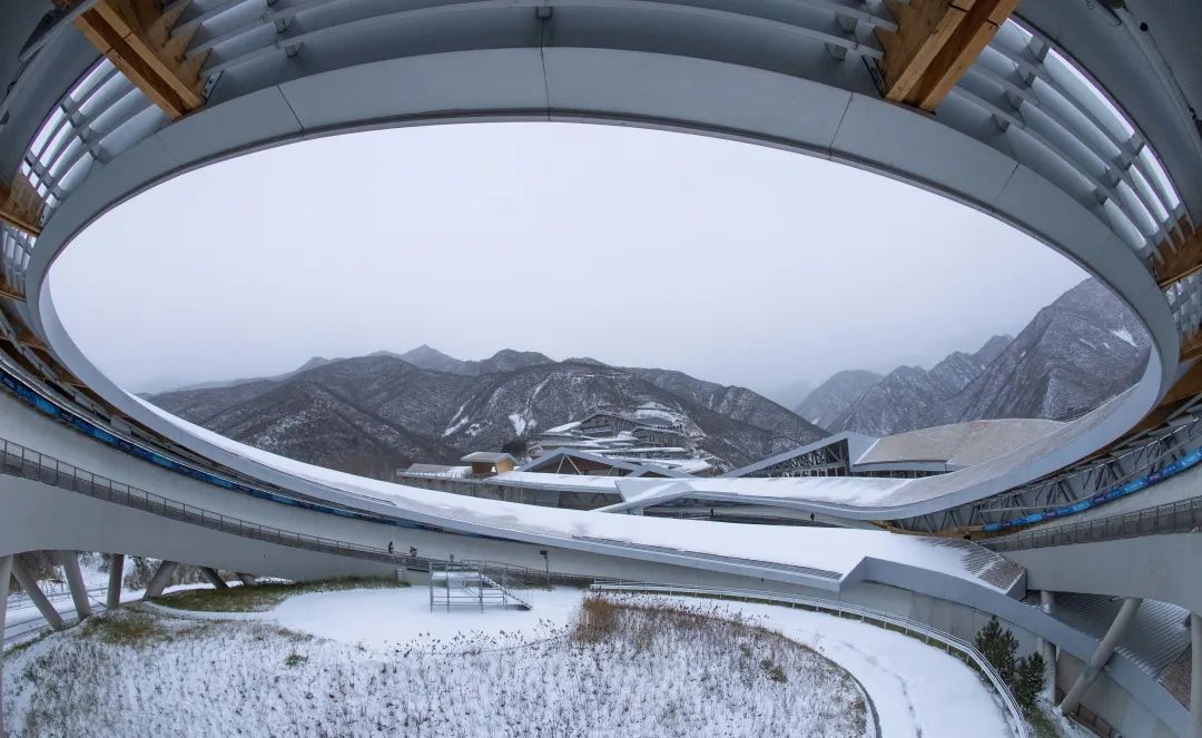 高耸入云的海陀之巅上,再现“戴雪奇景”,山脚下,延庆赛区里簌簌雪瓣洒落群山,点缀了一座座错落有致的冬奥建筑,宛如一幅绝美画卷。