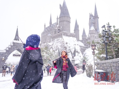 8日,北京迎来2021年冬季第一场雪。北京环球度假区哈利波特的魔法世界景区在漫天飞舞的大雪中别具魅力,游客徜徉在雪中的霍格莫德村、霍格沃茨城堡,如同进入了真正的电影世界。详情>>