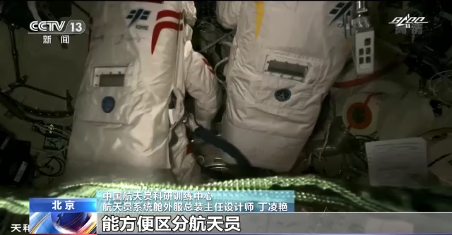 中国航天员科研训练中心航天员系统舱外服总装主任设计师 丁凌艳:包括关节位置,因为服装穿起来的时候是有一个关节对位的问题的,然后经过我们优化以后,我们让它更适合瘦小的航天员。