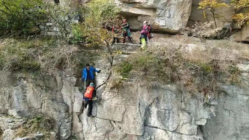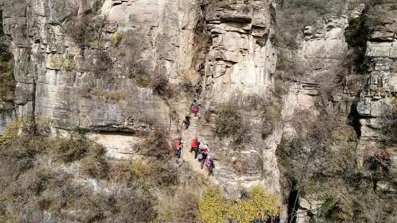 每层悬崖下有盘道山体险峻