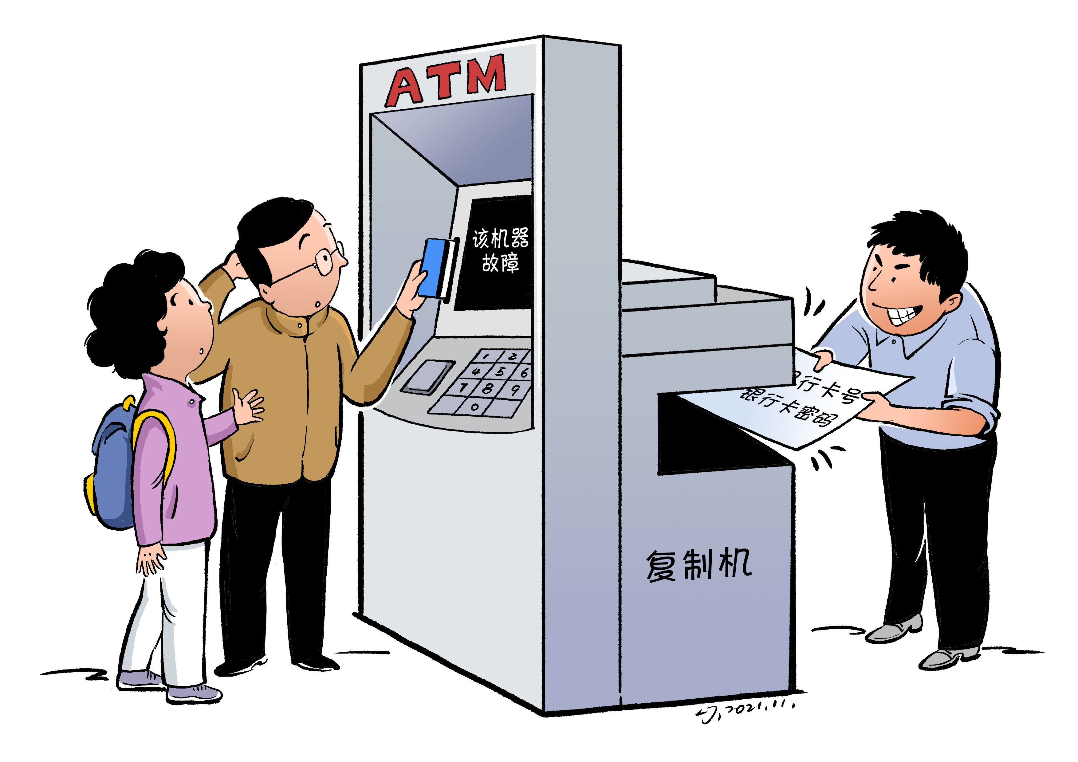 人在家中坐,钱却在国外被盗取。近日,贵州雷山县法院判决了一起信用卡诈骗案。被告克隆ATM机,并在一家景区内伪造某银行ATM机网点。当游客使用这台假ATM机时,插卡输入密码后,机器显示“该机器故障”,而银行卡的信息已通过远程操作软件采集、复制,犯罪分子在境外取走该银行卡内的余额。对犯罪分子要绳之以法,银行也要瞪大眼睛,不能自家网点被山寨了都不知情。